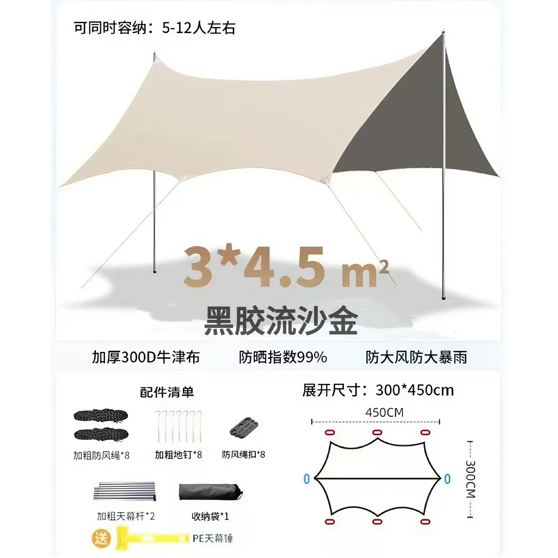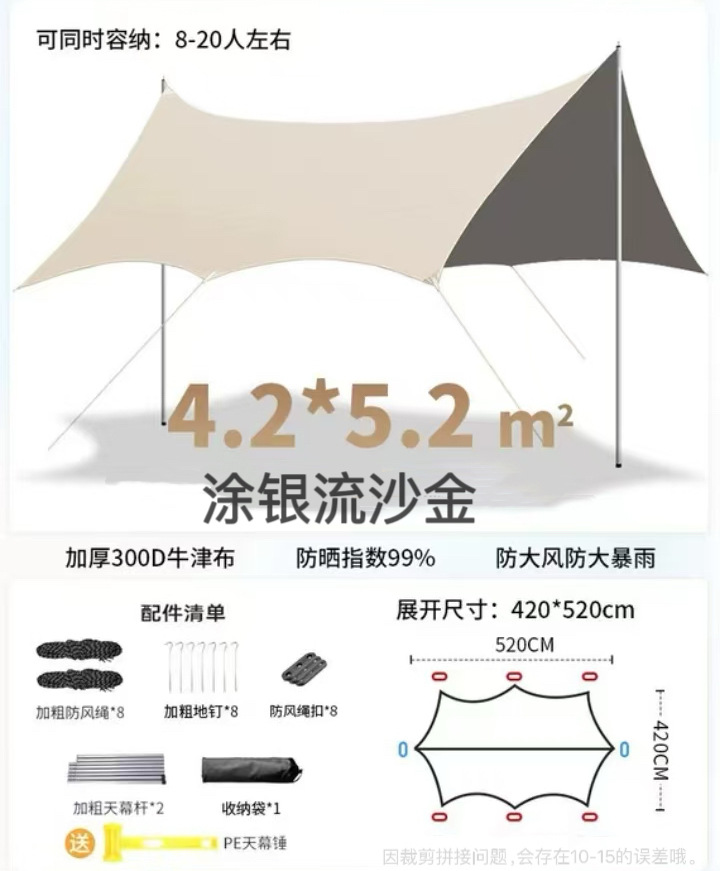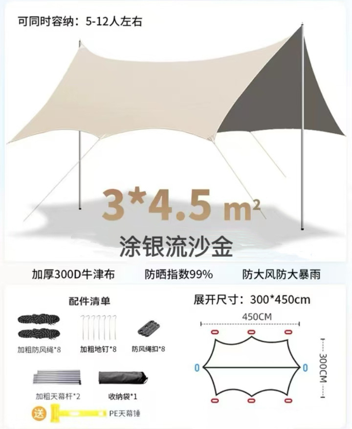 야외 캠핑용 캐노피, 두꺼운 옥스포드 천, 나비 모양, 초대형, 자외선 차단, 피크닉, 방수, 레저 캠핑