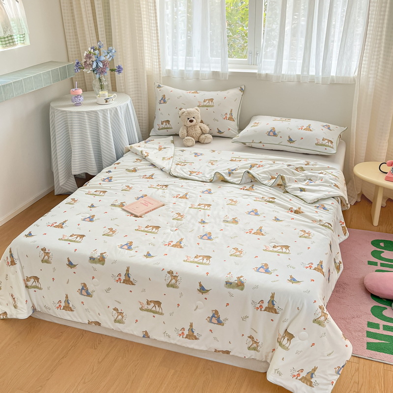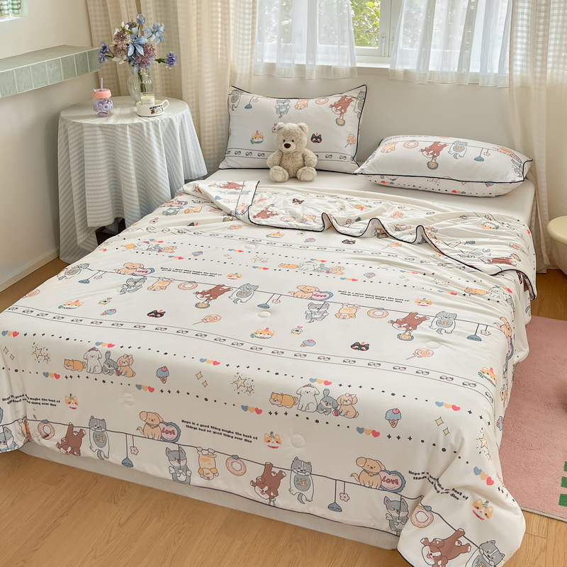 니트 코튼 여름 이불 콩 섬유 이불 코어 만화 어린이 커버 퀼트 유치원 여름 이불 싱글 더블 에어컨 이불