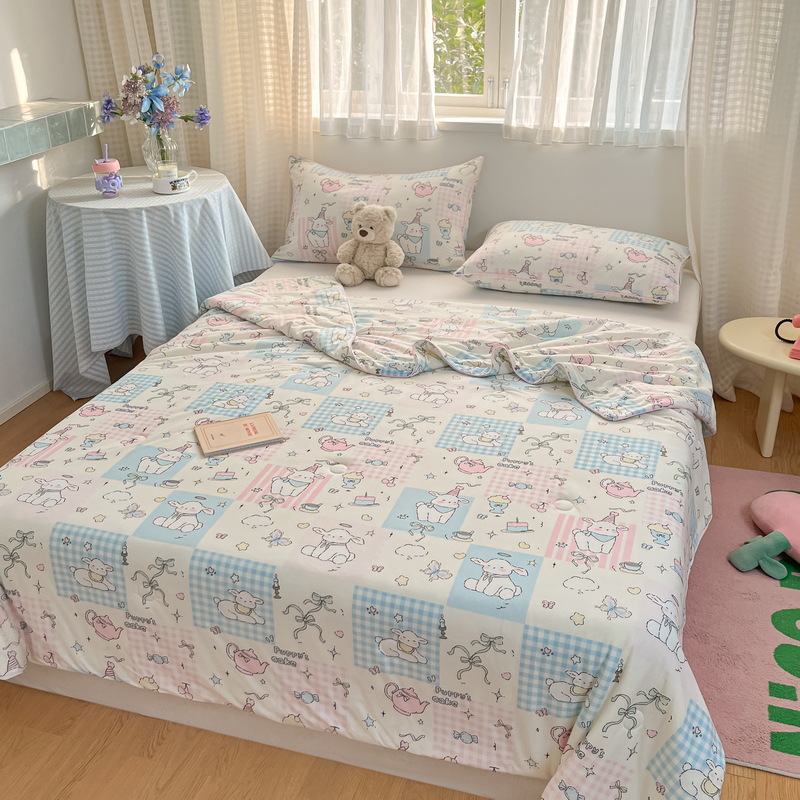 니트 코튼 여름 이불 콩 섬유 이불 코어 만화 어린이 커버 퀼트 유치원 여름 이불 싱글 더블 에어컨 이불스토어 가기