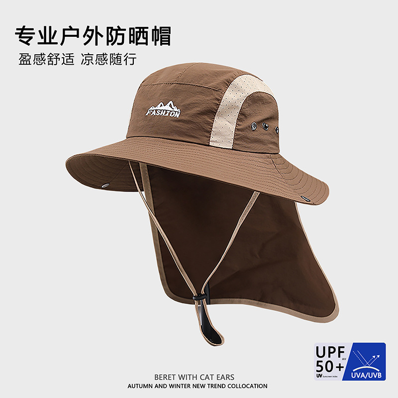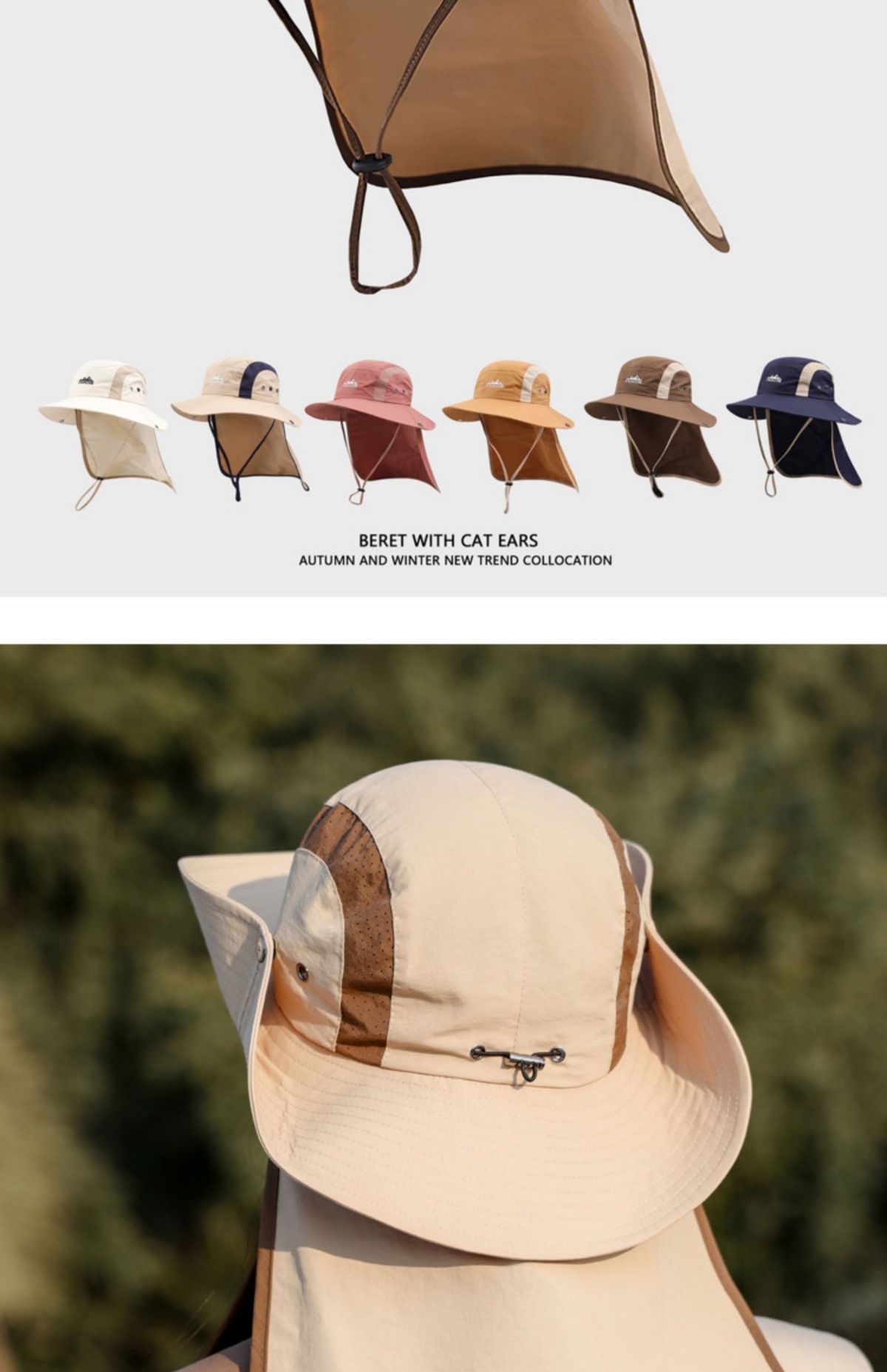 • 야외용 태양 모자 + 숄 - 카키색 + 커피