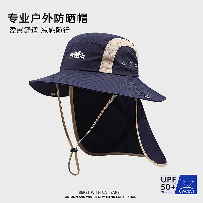 • 야외용 태양 모자 + 숄 - 네이비 블루