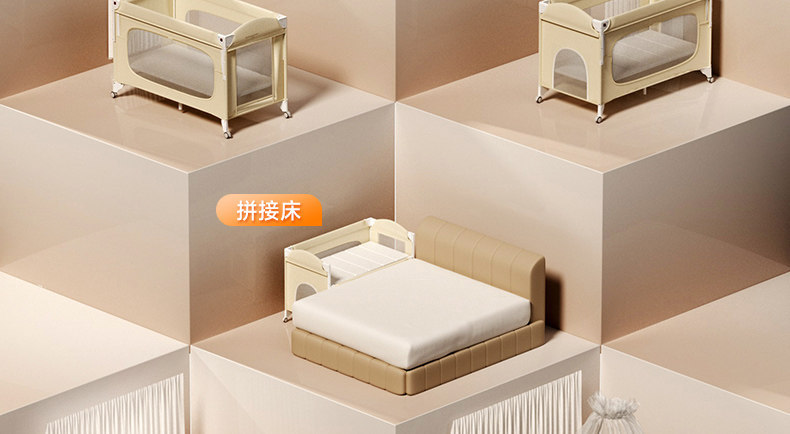 원클릭 접이식, 설치 불필요 아기침대, 다기능 접합침대, 휴대용 이동식 아기 요람침대, 아기침대스토어 가기