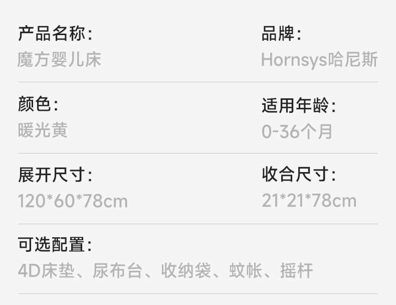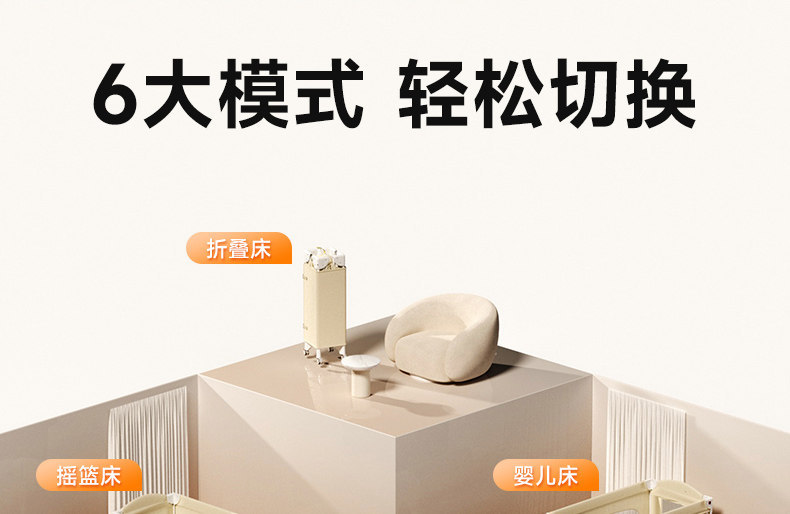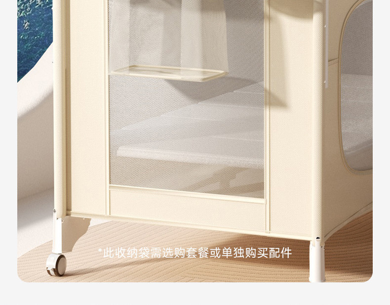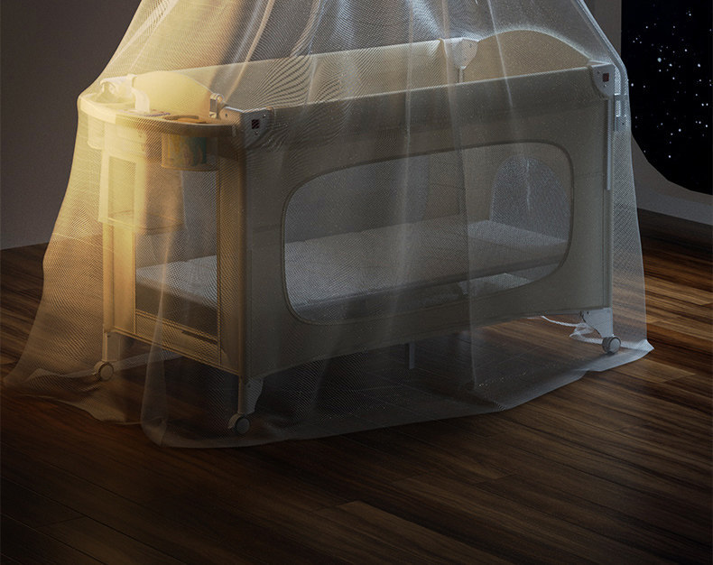• 유아용 침대 + 모기장 + 기저귀 교환대 + 벨 + 스윙 바 + 보관 가방