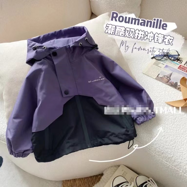 소년 크록 코트 봄과 가을 2025 새로운 가을 아기 코트 소년 바느질 후드 러시 옷 가을 옷스토어 가기