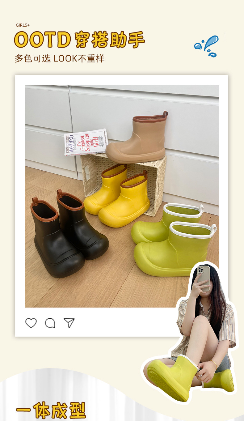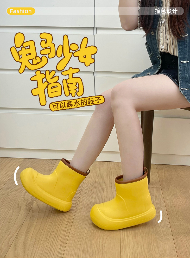 두꺼운 밑창 야외 장화 여성 봄 패션 한국 스타일 스티칭 캔디 컬러 4 시즌 두꺼운 배럴 하이 탑 부츠 고무 신발