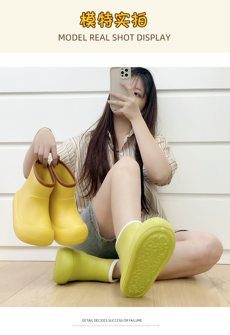 두꺼운 밑창 야외 장화 여성 봄 패션 한국 스타일 스티칭 캔디 컬러 4 시즌 두꺼운 배럴 하이 탑 부츠 고무 신발스토어 가기