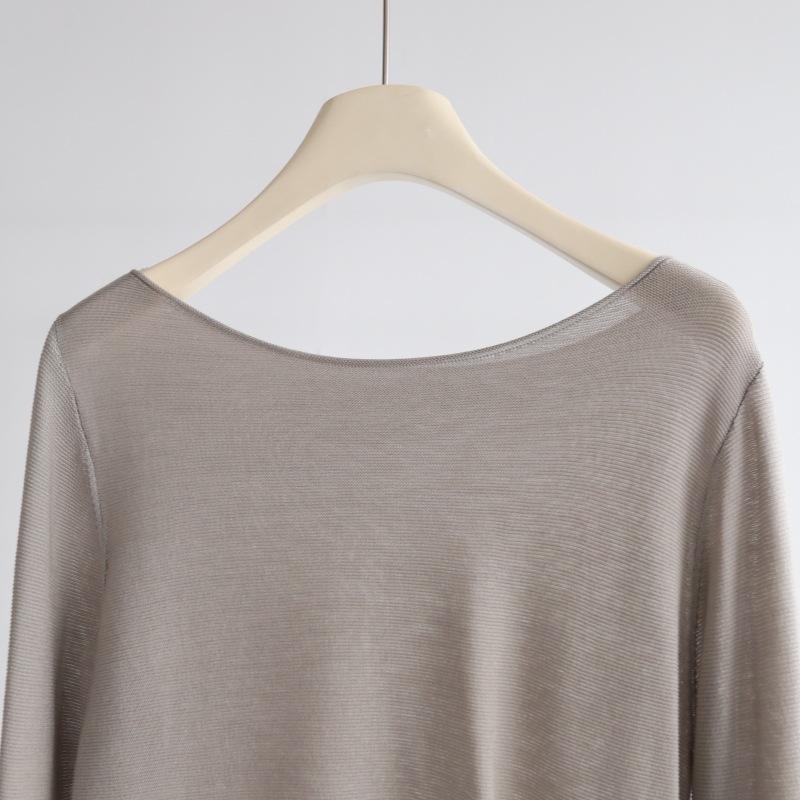 래핑 Lyocell Tencel 긴팔 니트 블라우스 여성용 긴팔 풀오버 느슨한 핏 기본 탑스토어 가기