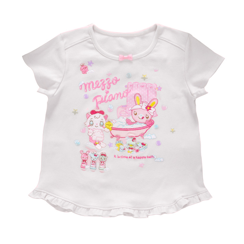 스팟 mp 딸 의류 피아니스트 여름 만화 귀여운 연인 목욕 토끼 레이스 반팔 티셔츠 탑스토어 가기