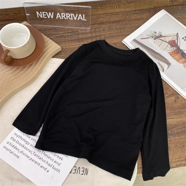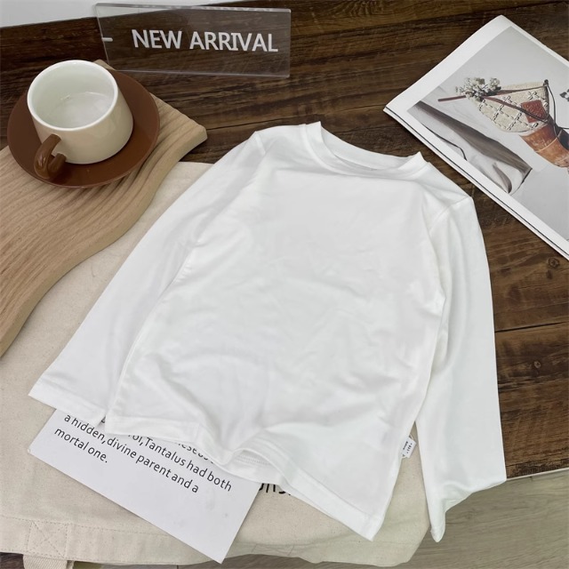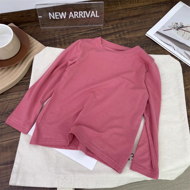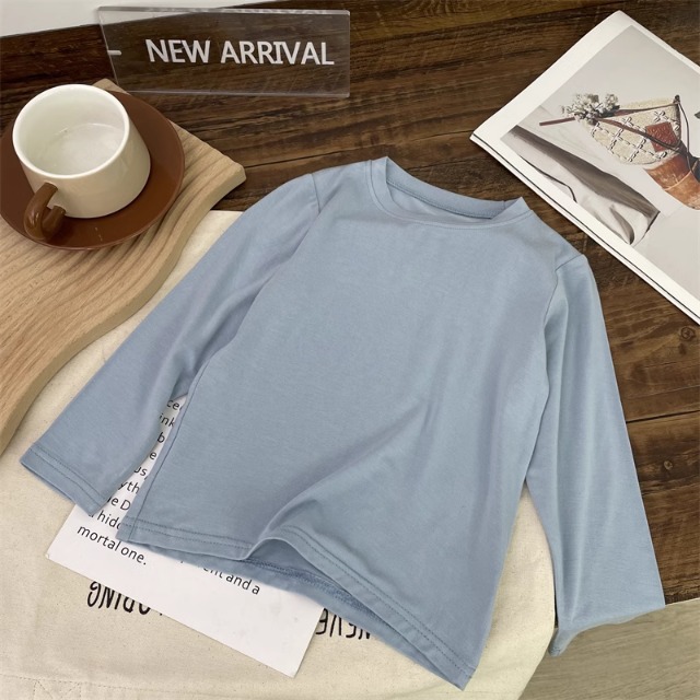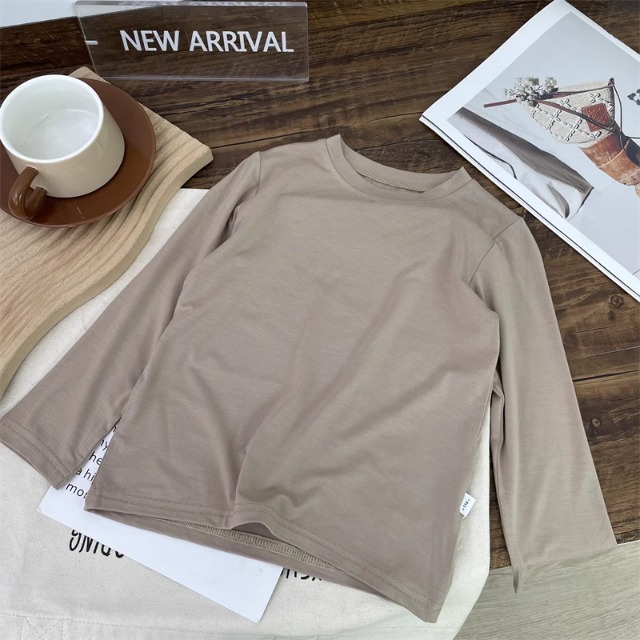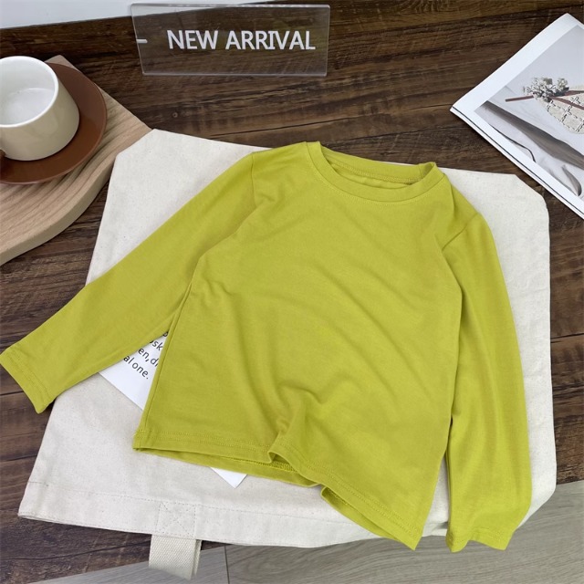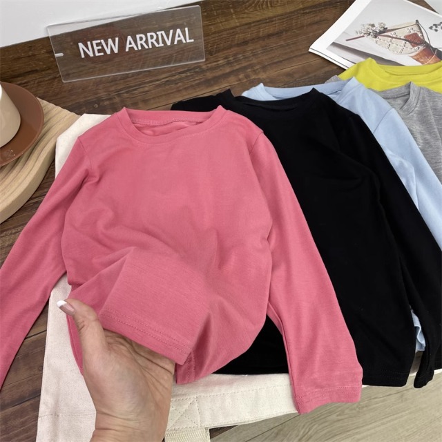 어린이 모달베이스 셔츠 소년의 단색 티셔츠 소녀 크루 넥베이스 셔츠 아기의 최고 티셔츠 봄과 가을스토어 가기