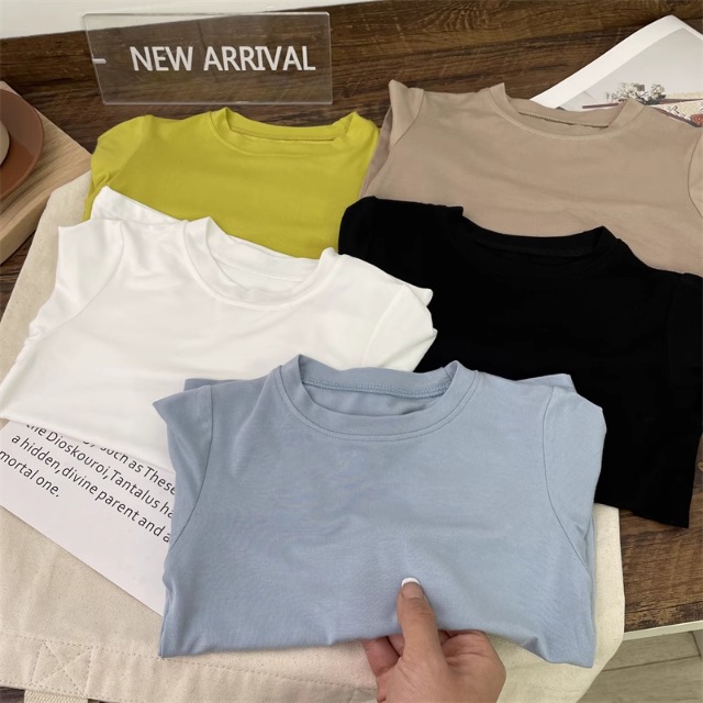 어린이 모달베이스 셔츠 소년의 단색 티셔츠 소녀 크루 넥베이스 셔츠 아기의 최고 티셔츠 봄과 가을