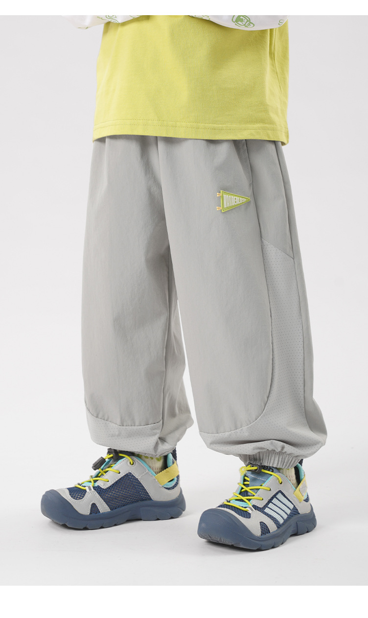 오른쪽 유럽 소년 차가운 감각 빠른 건조 긴 바지 여름 착용 아동복 어린이 아기 소년의 여름 얇은 유행 옷스토어 가기