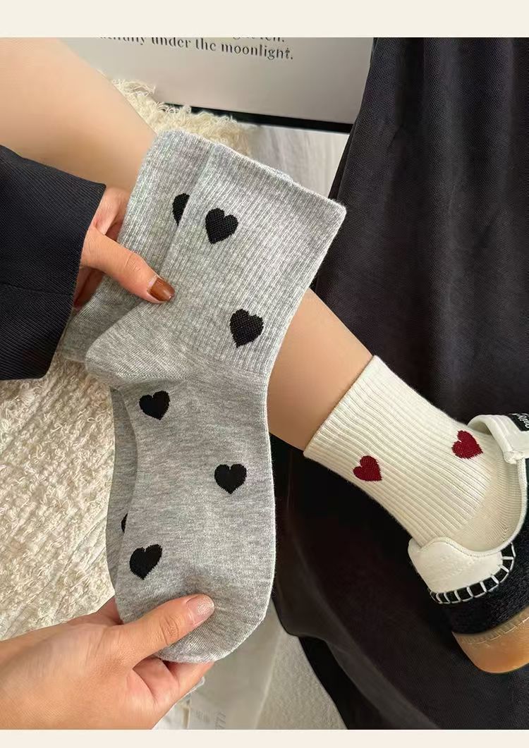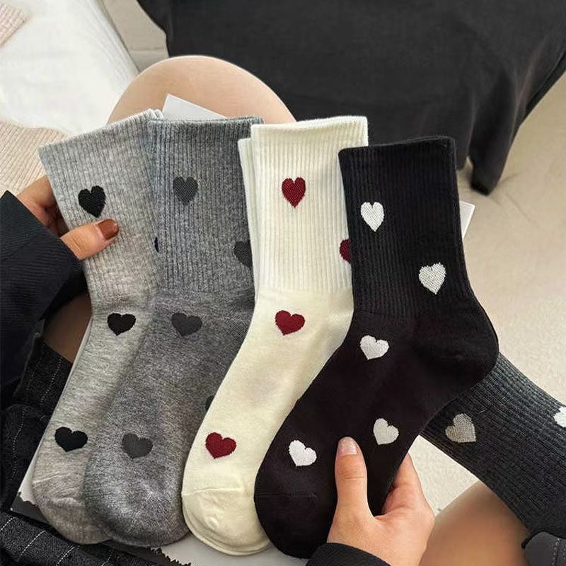 사랑 양말 어린이 중간 길이 양말 가을과 겨울 스타킹 흑백 회색 학생 양말 한국식 일본 동대문 유행 양말