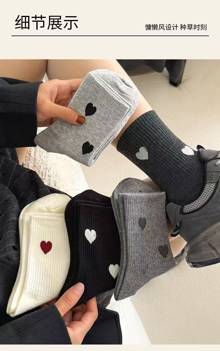 사랑 양말 어린이 중간 길이 양말 가을과 겨울 스타킹 흑백 회색 학생 양말 한국식 일본 동대문 유행 양말스토어 가기