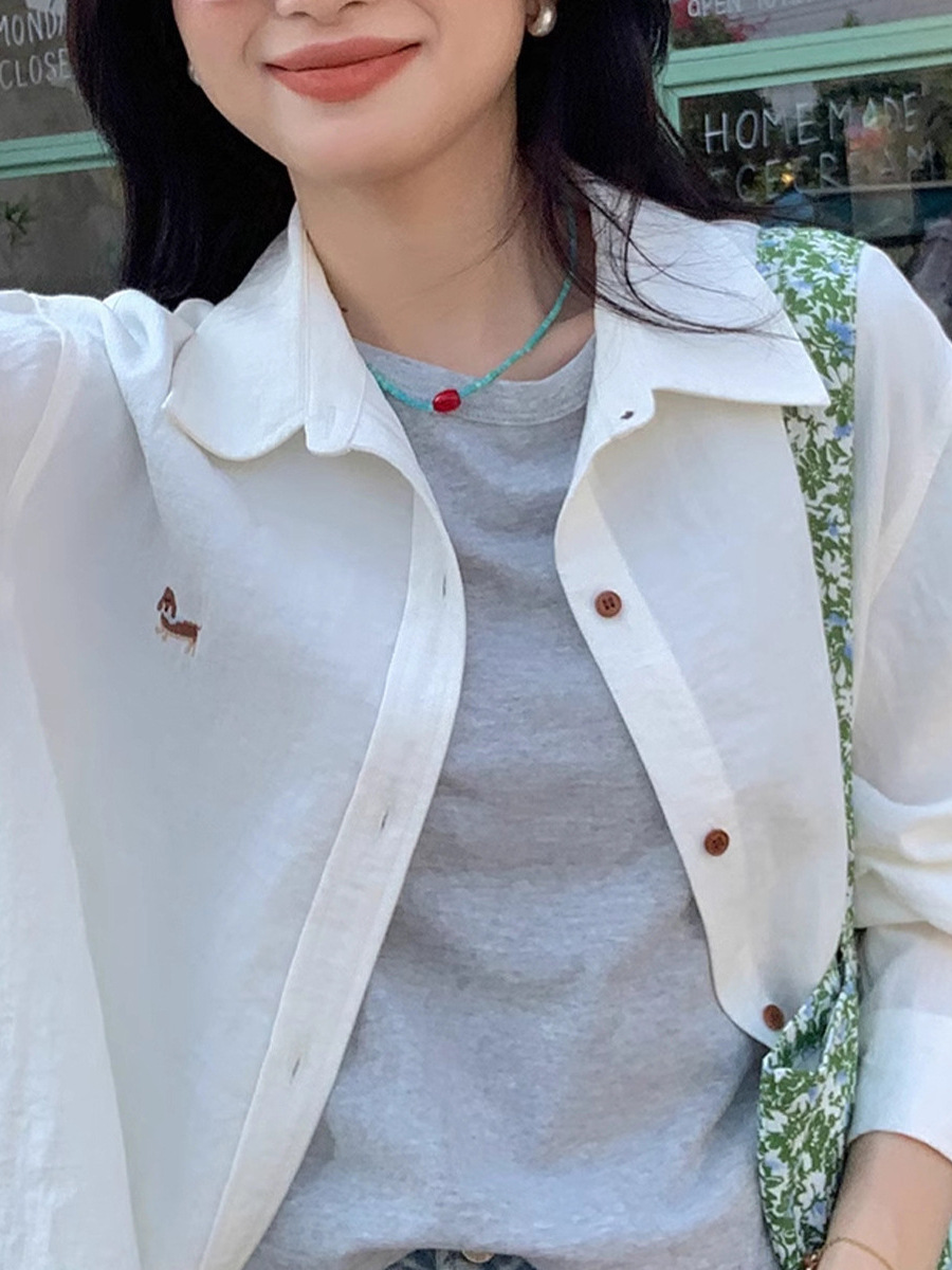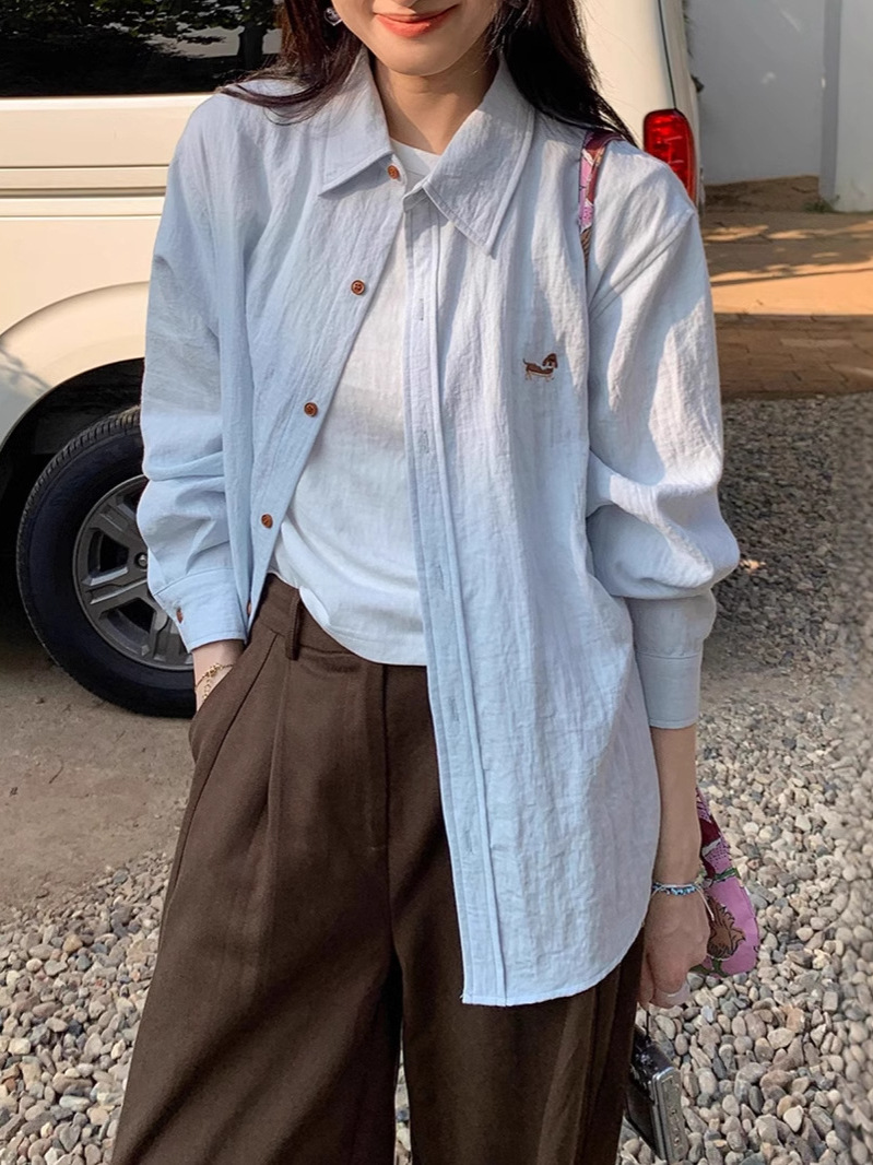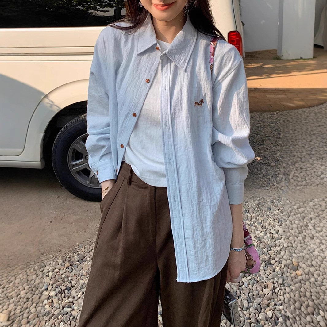 봄 가을 캐주얼 조커 셔츠 여성을위한 수 놓은 텐셀 셔츠스토어 가기