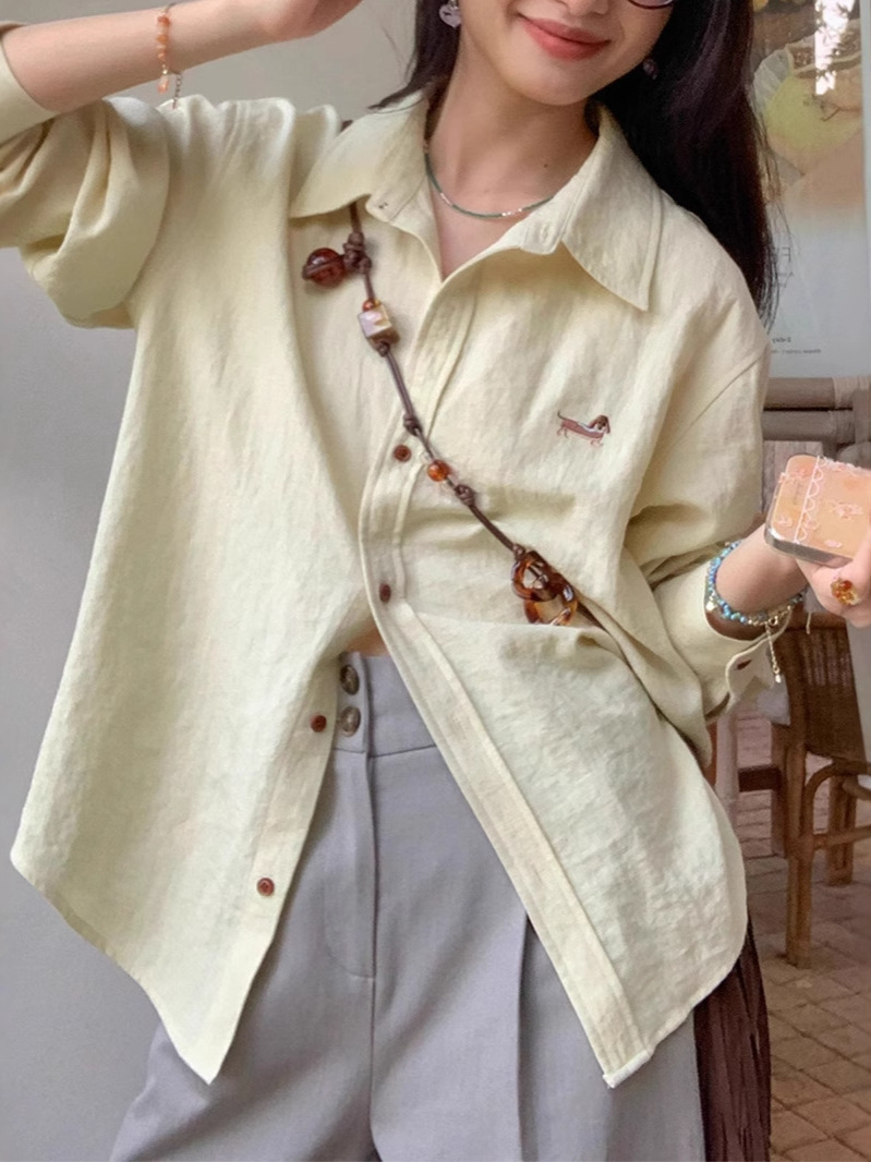 봄 가을 캐주얼 조커 셔츠 여성을위한 수 놓은 텐셀 셔츠