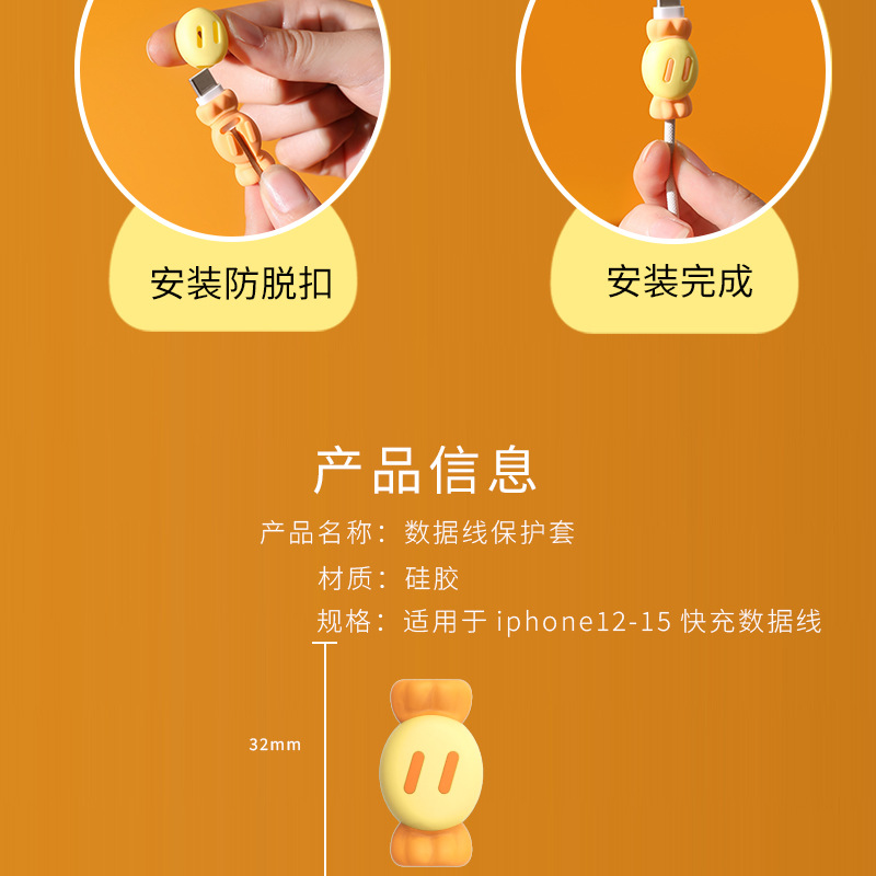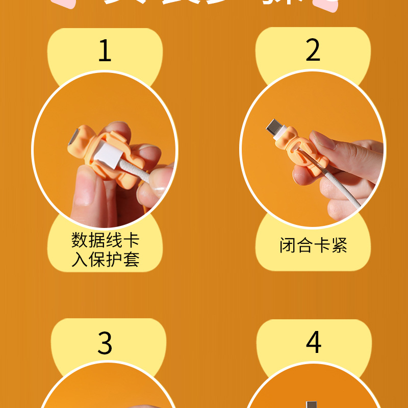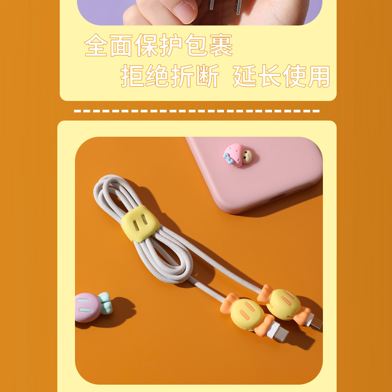 휴대 전화 데이터 케이블 보호 커버 실리콘 만화 투인원 저장 와이어 파손 방지 충전 케이블 헤드 여행스토어 가기