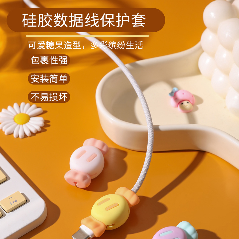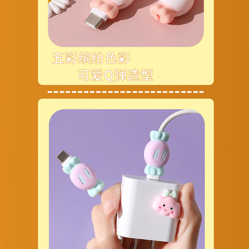 휴대 전화 데이터 케이블 보호 커버 실리콘 만화 투인원 저장 와이어 파손 방지 충전 케이블 헤드 여행