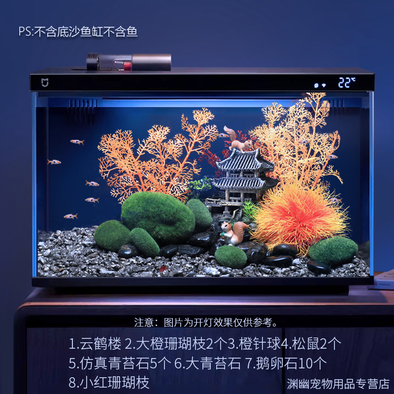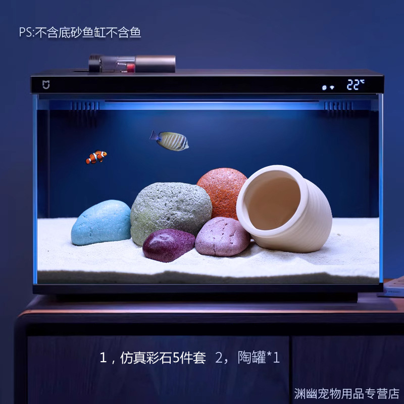 국경을 넘는 샤오미 어항 조경 세트, 컬러 스톤, 자갈, 컬러풀한 돌, 은신처 장식, 인조 수초 장식품스토어 가기