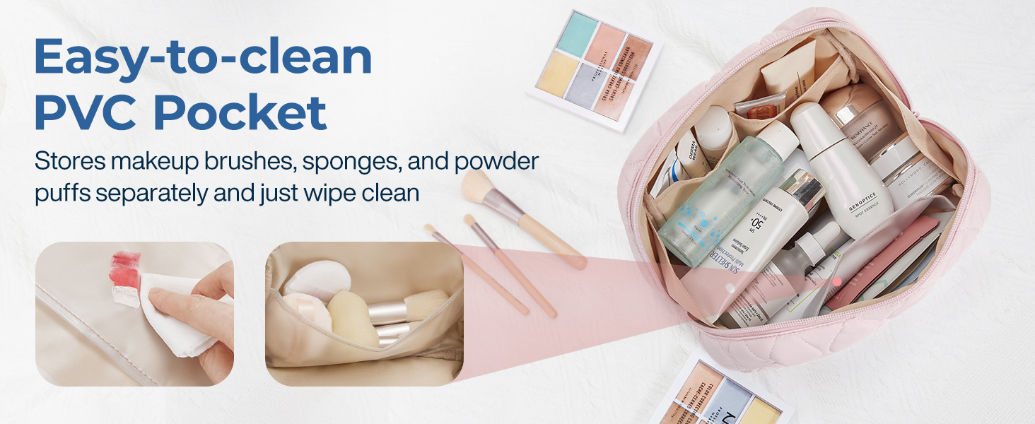 새로운 퀼트 깃털 방수 화장실 가방 화장품 보관 패드 여행 휴대용 지퍼 화장품 휴대용 보관 가방