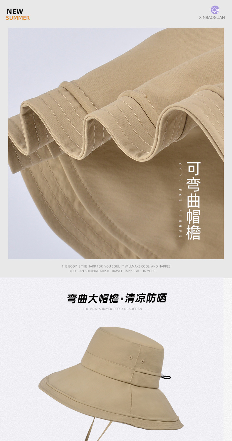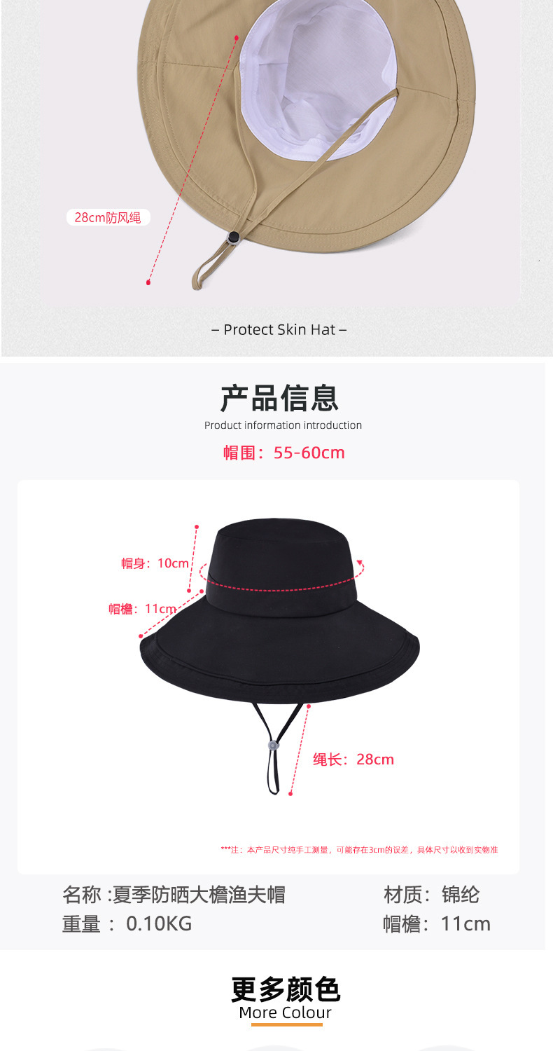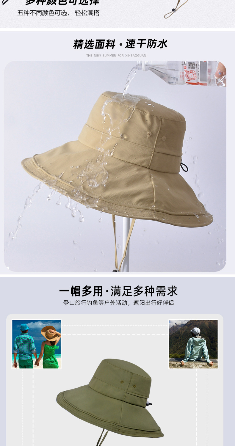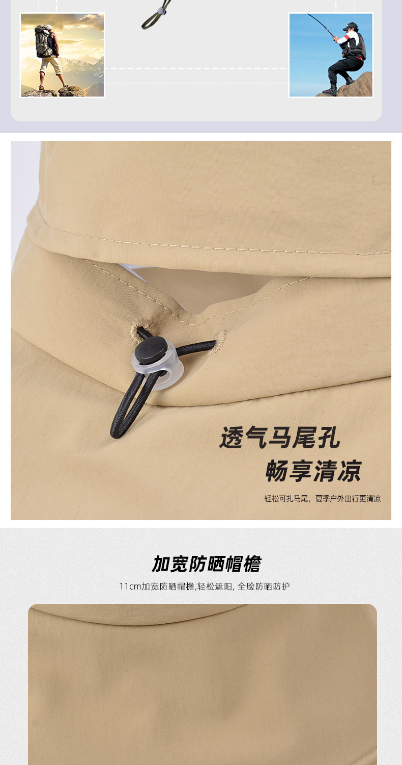 2025 새로운 봄과 여름 모자 선 스크린 큰 처마 어부 얼굴을 가리는 소녀 방수 통기성 말꼬리 구멍 야외 태양 모자
