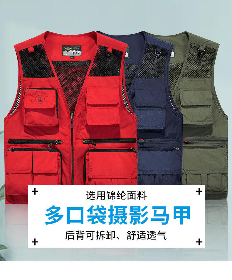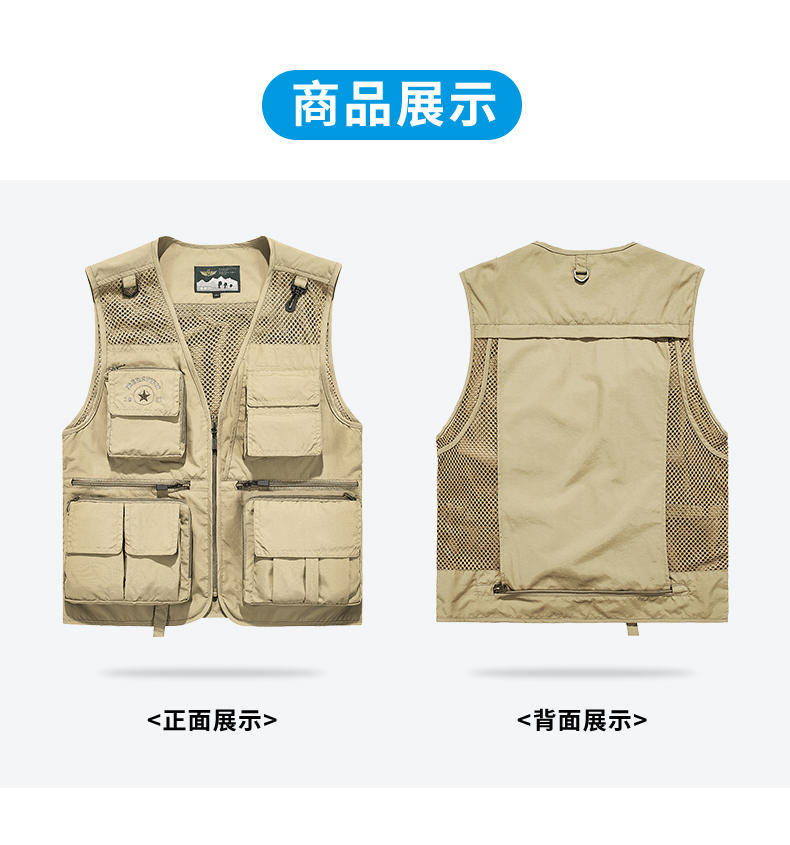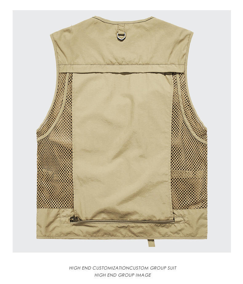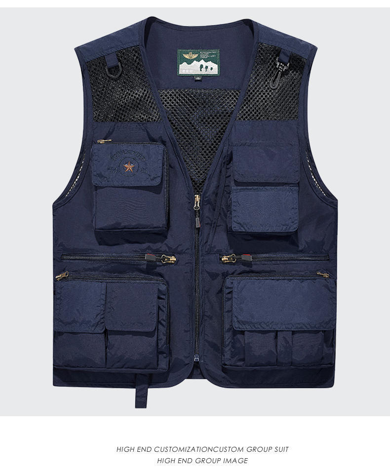 야외 멀티 포켓 조끼 남자의 봄과 가을 빠른 건조 낚시 사진 등산 조끼 토핑 허리 코트 인쇄 및 자수 로고스토어 가기