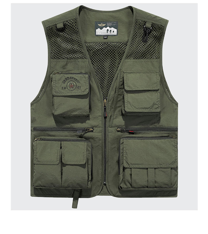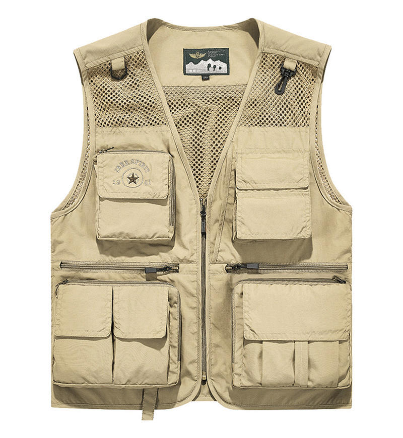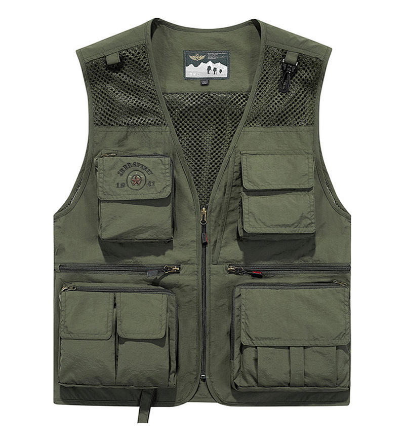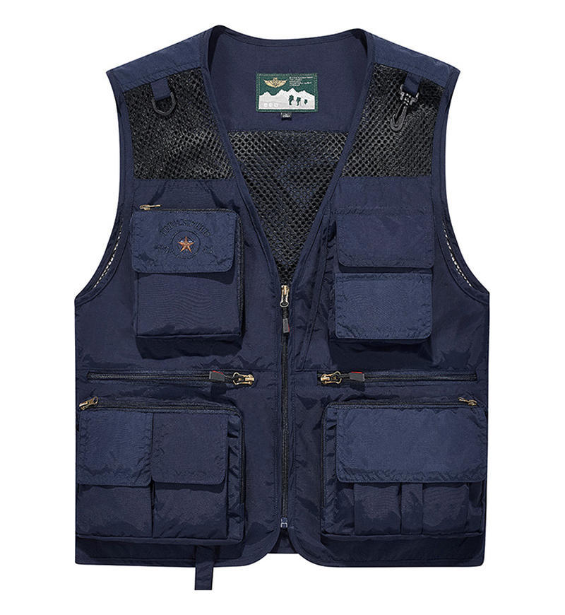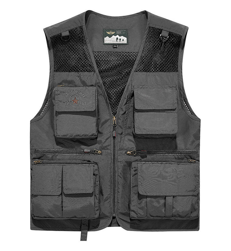 야외 멀티 포켓 조끼 남자의 봄과 가을 빠른 건조 낚시 사진 등산 조끼 토핑 허리 코트 인쇄 및 자수 로고스토어 가기