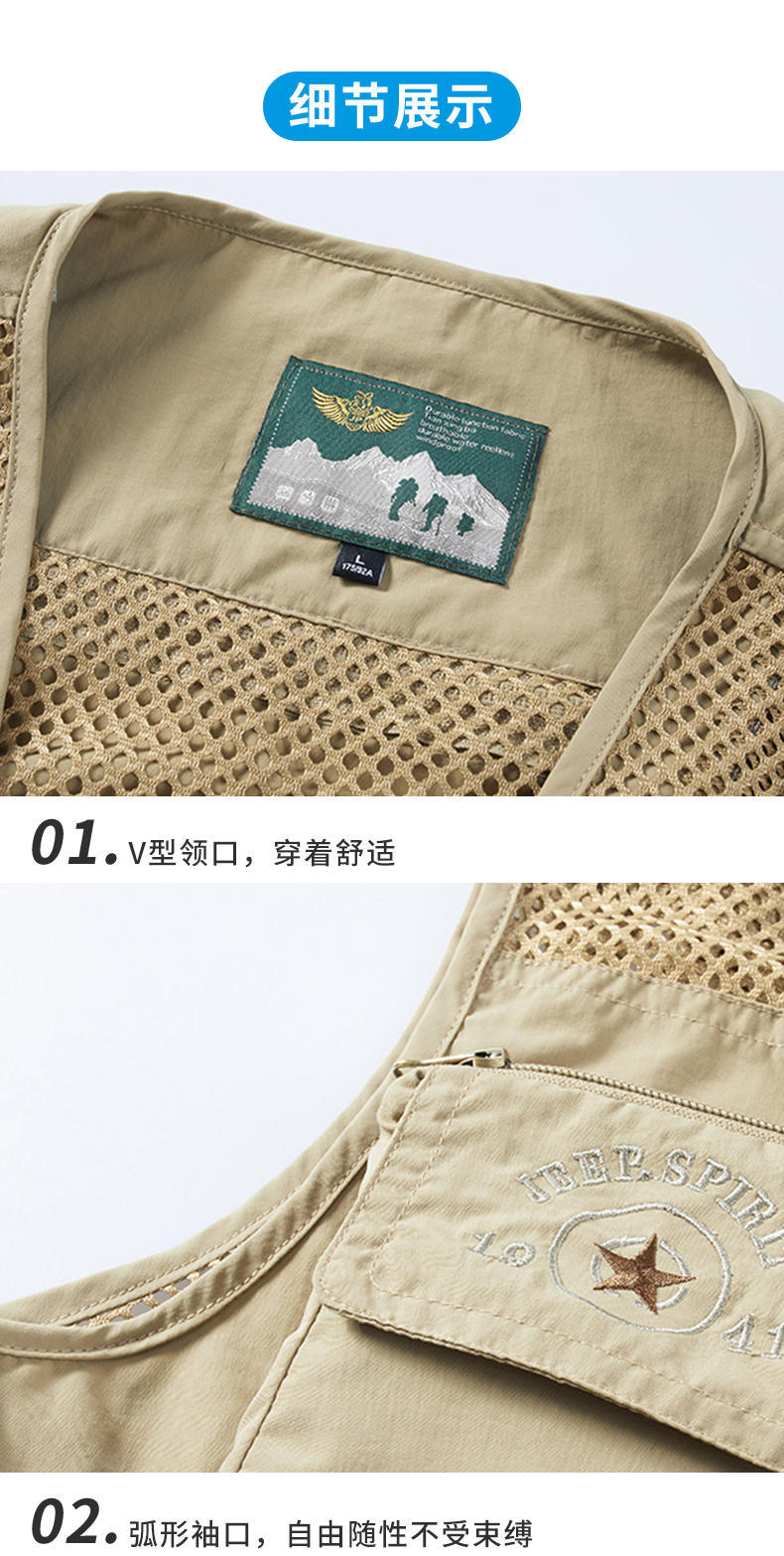 야외 멀티 포켓 조끼 남자의 봄과 가을 빠른 건조 낚시 사진 등산 조끼 토핑 허리 코트 인쇄 및 자수 로고