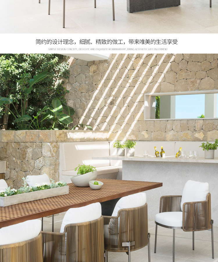 야외용 테이블과 의자, 등나무로 짠 정원용 의자, 야외용 등나무 의자, 휴식용, 자외선 차단, 방수, 발코니 티크 테이블 세트