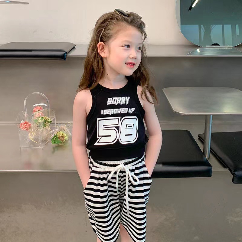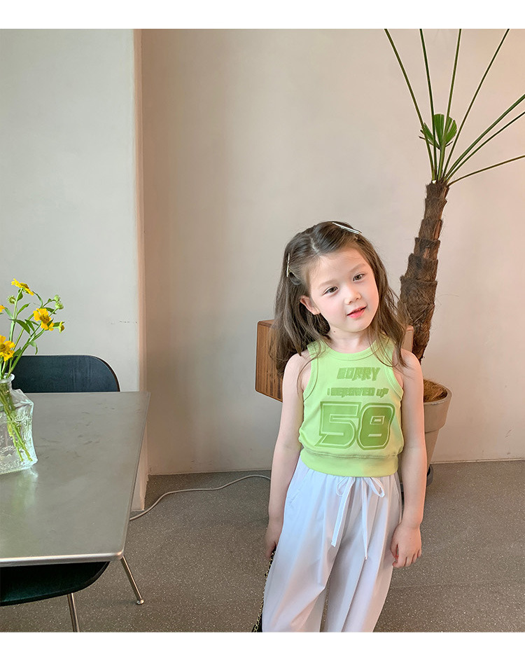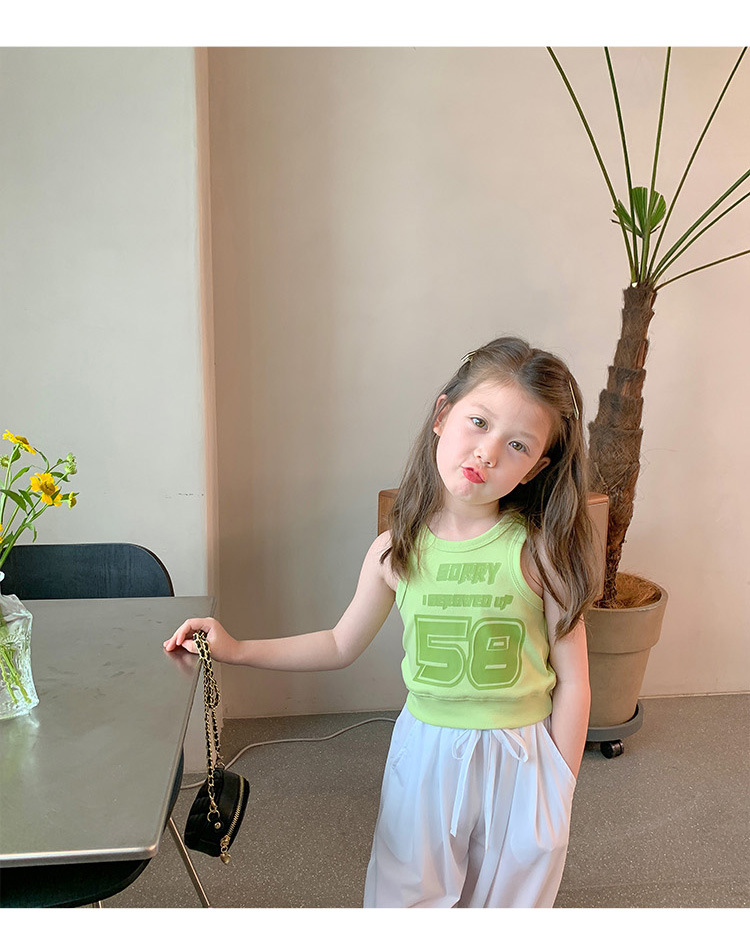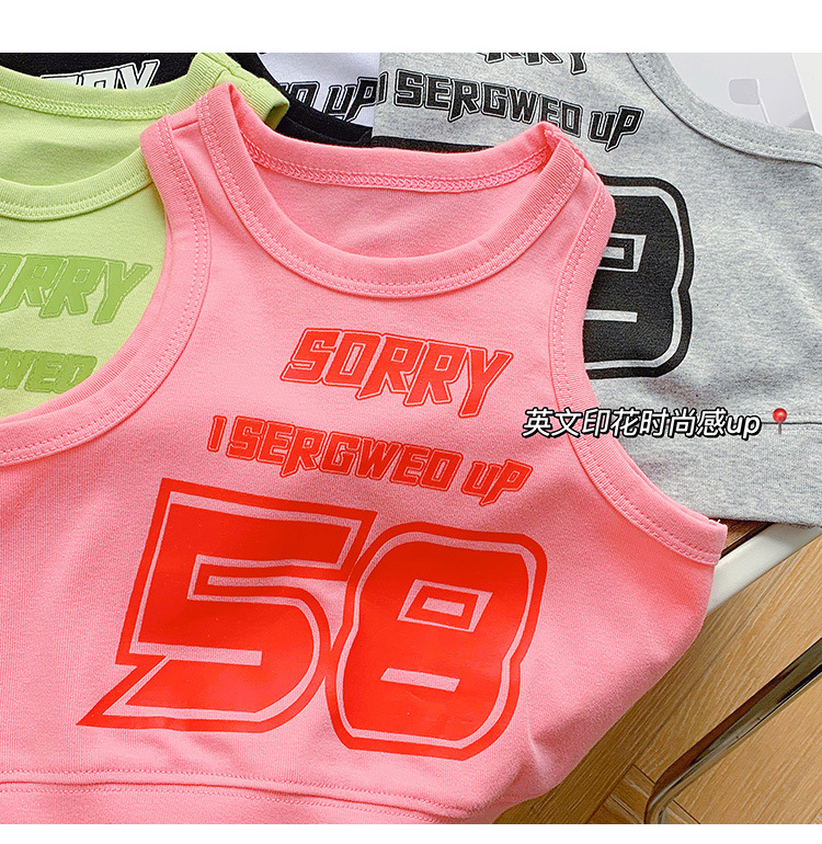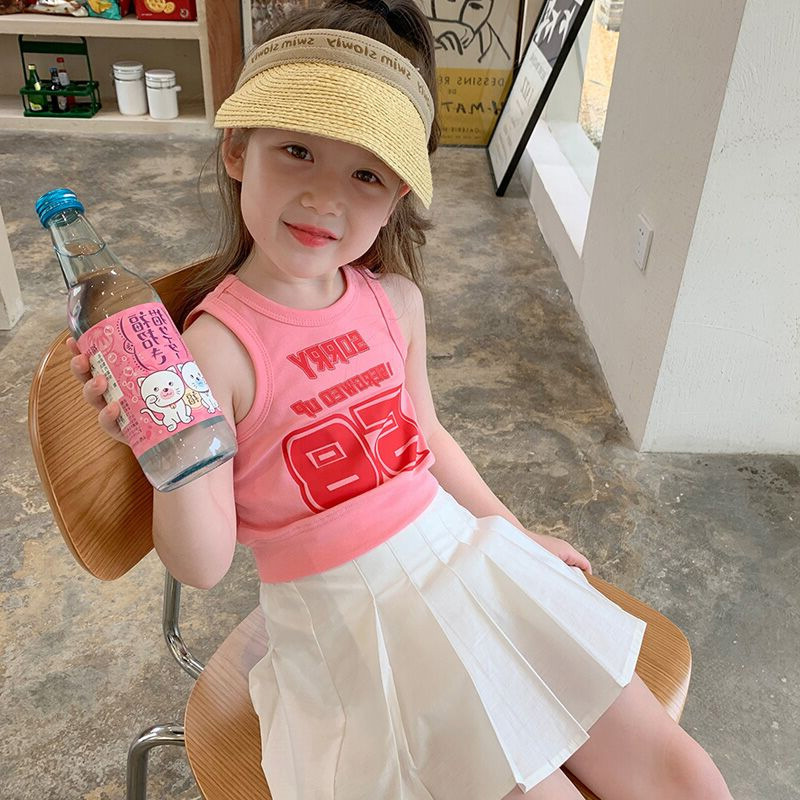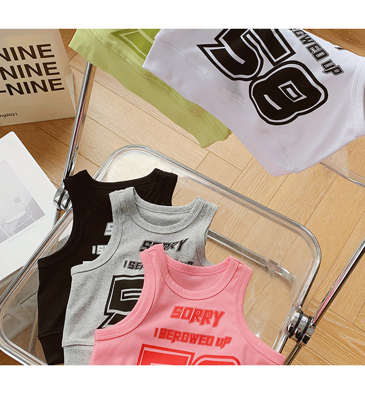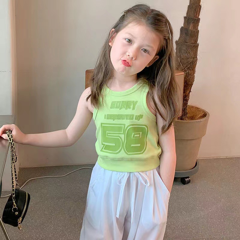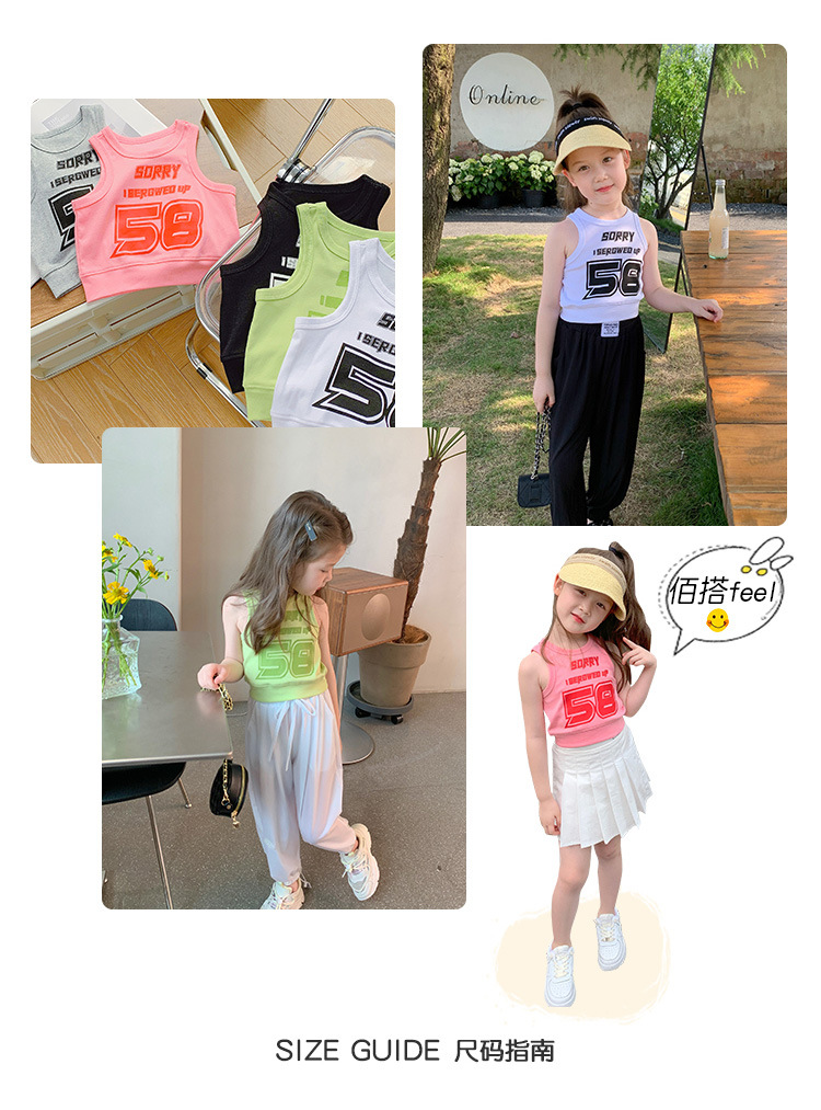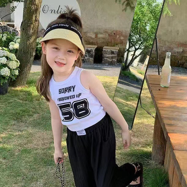공장 직접 도매 및 소매 소녀 여름 조끼 2025 새로운 어린이 외국 스타일 짧은 민소매 아기 탑