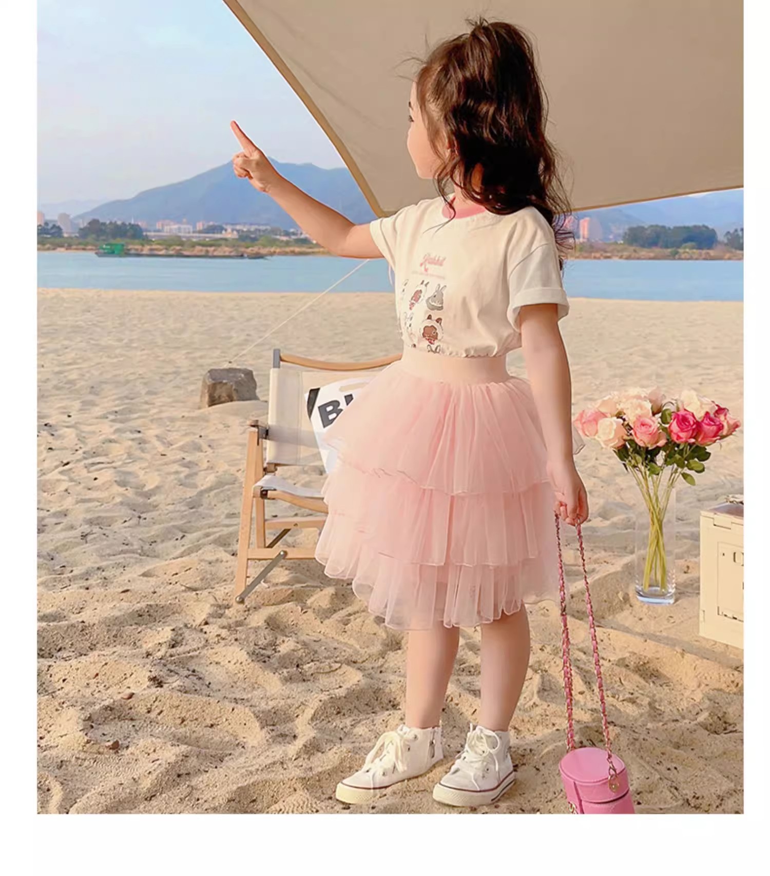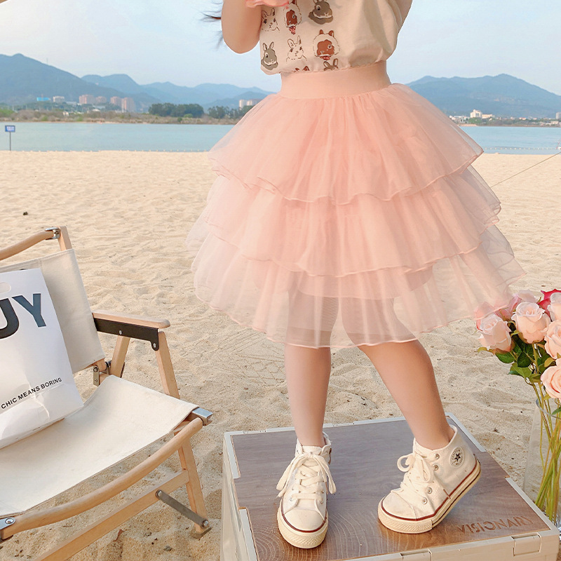 소녀 메시 케이크 스커트 여름 공주 푹신한 스커트 핑크 소녀의 아기 웨스턴 스타일 어린이 스커트 달콤한 스타일