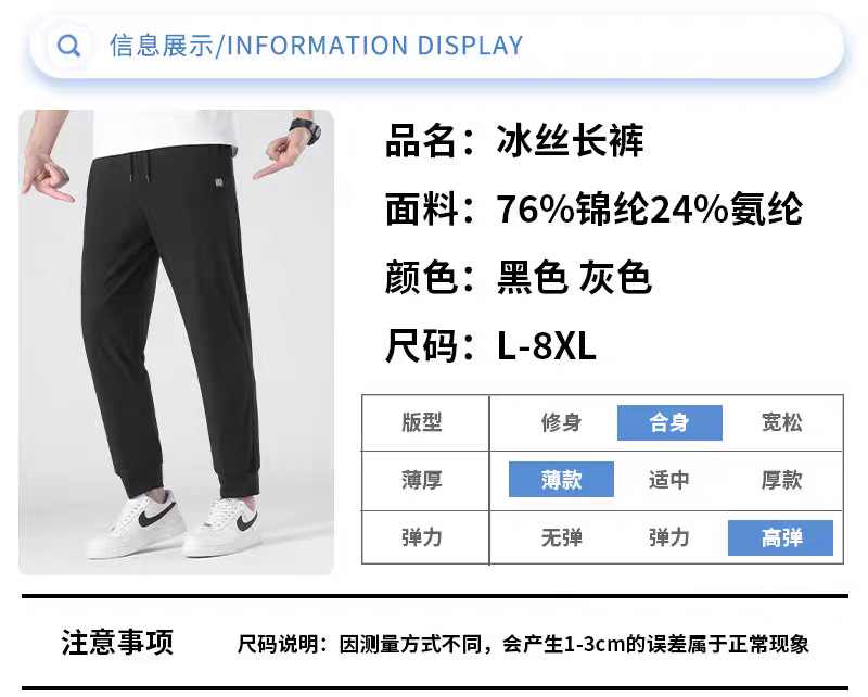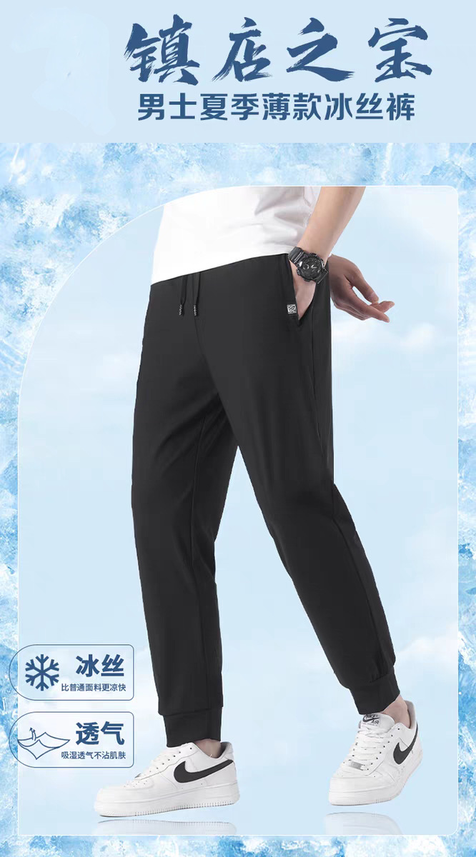 아이스 실크 바지 남자 바지 여름 얇은 빠른 건조 바지 남자 캐주얼 바지 느슨한 바지 플러스 사이즈 스포츠 바지 스트레이트 바지스토어 가기