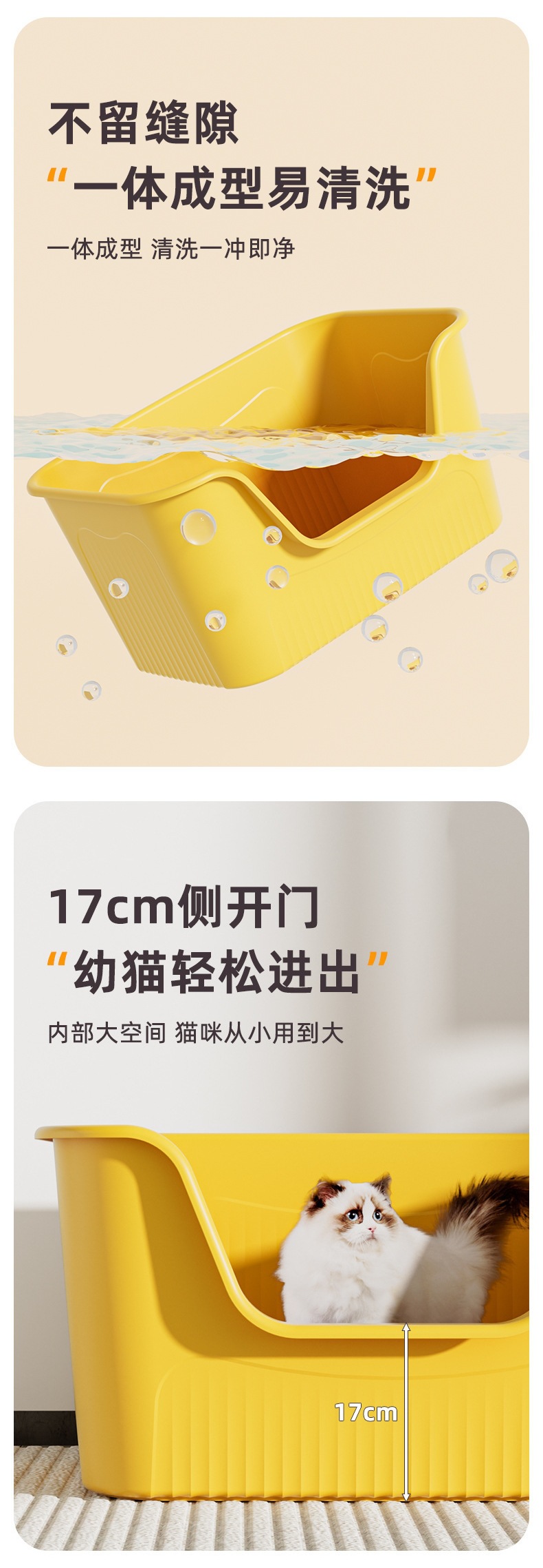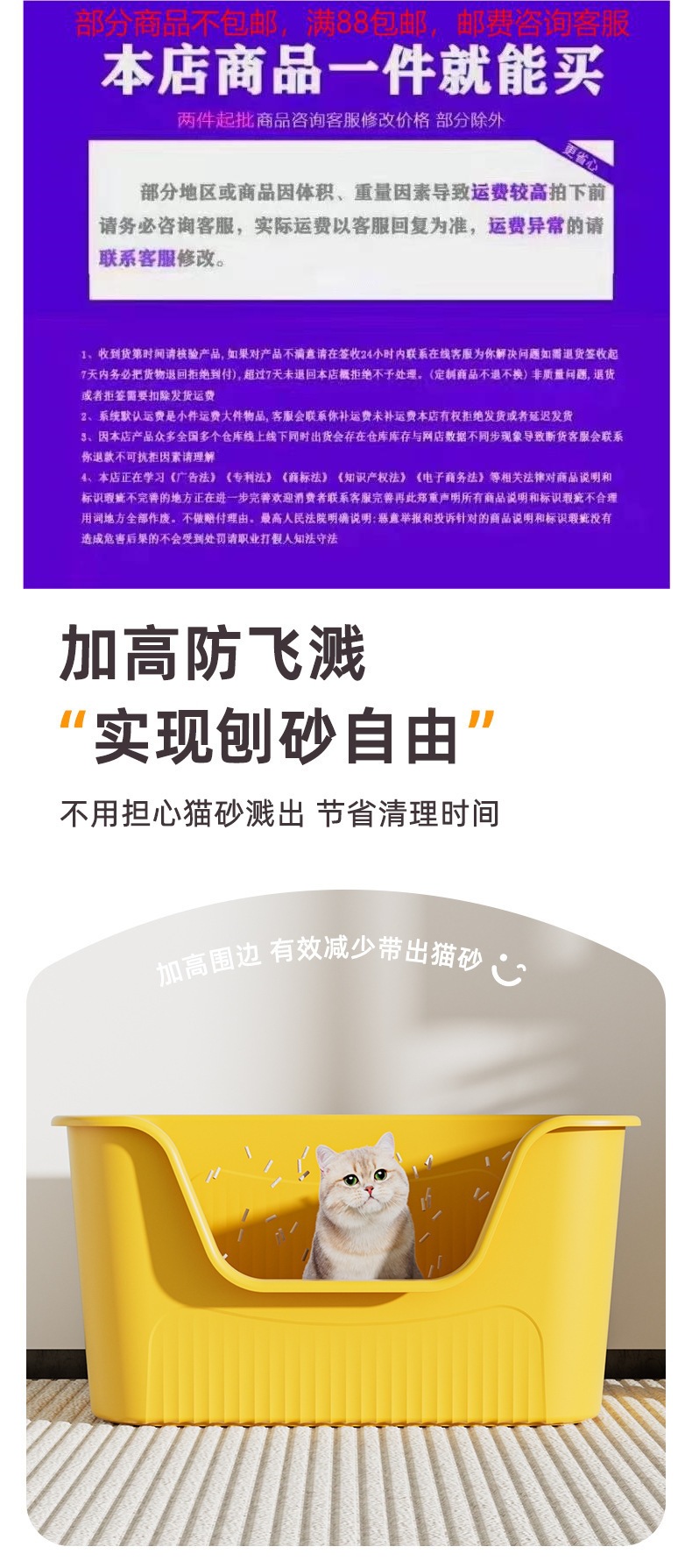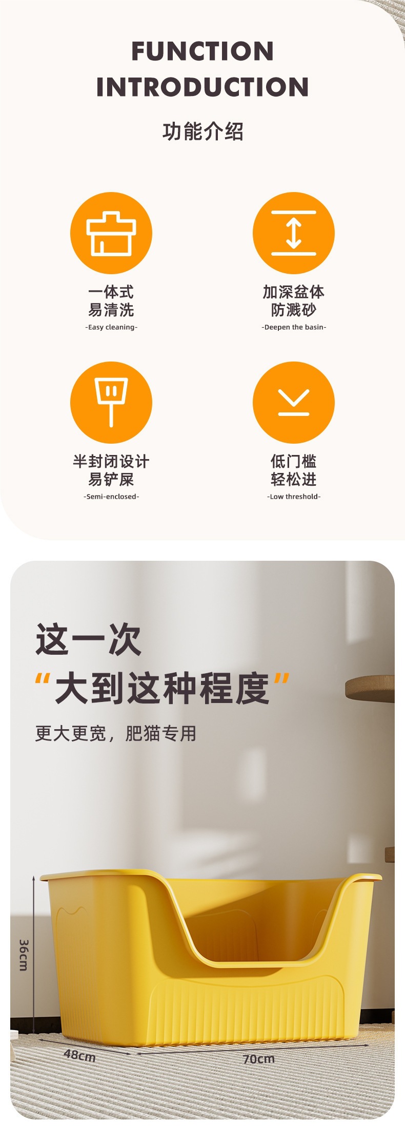 1 번 오픈 안티 스플래시 고양이 화장실 초대형 고양이 모래 분지 반 폐쇄 고양이 쓰레기 분지 자이언트 버터 두꺼운 분지