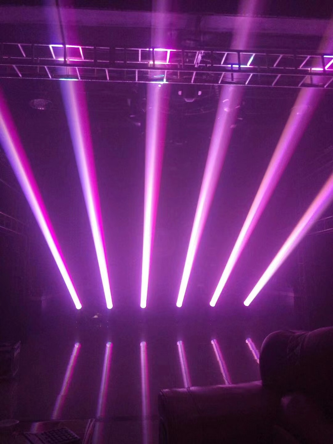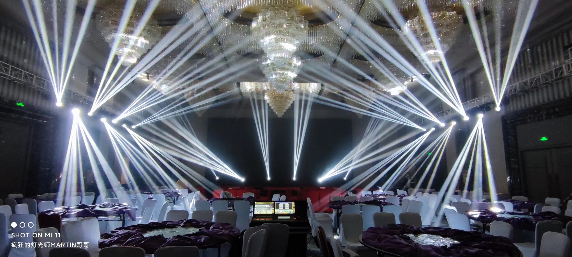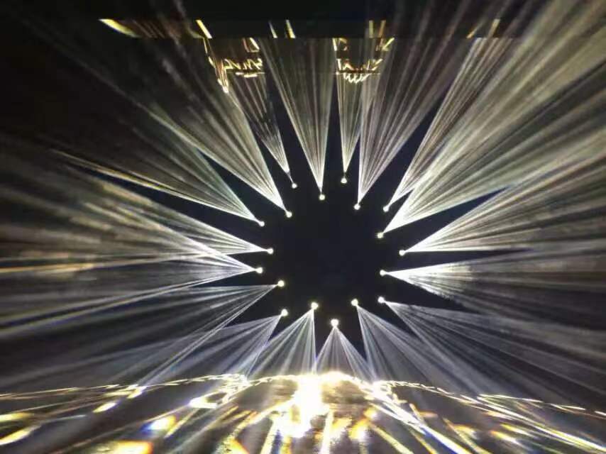 效 果 轮:1个可旋转8棱镜,另一个旋转排镜或8+16棱镜,独立雾化效果,光斑柔和自然雾化功能。