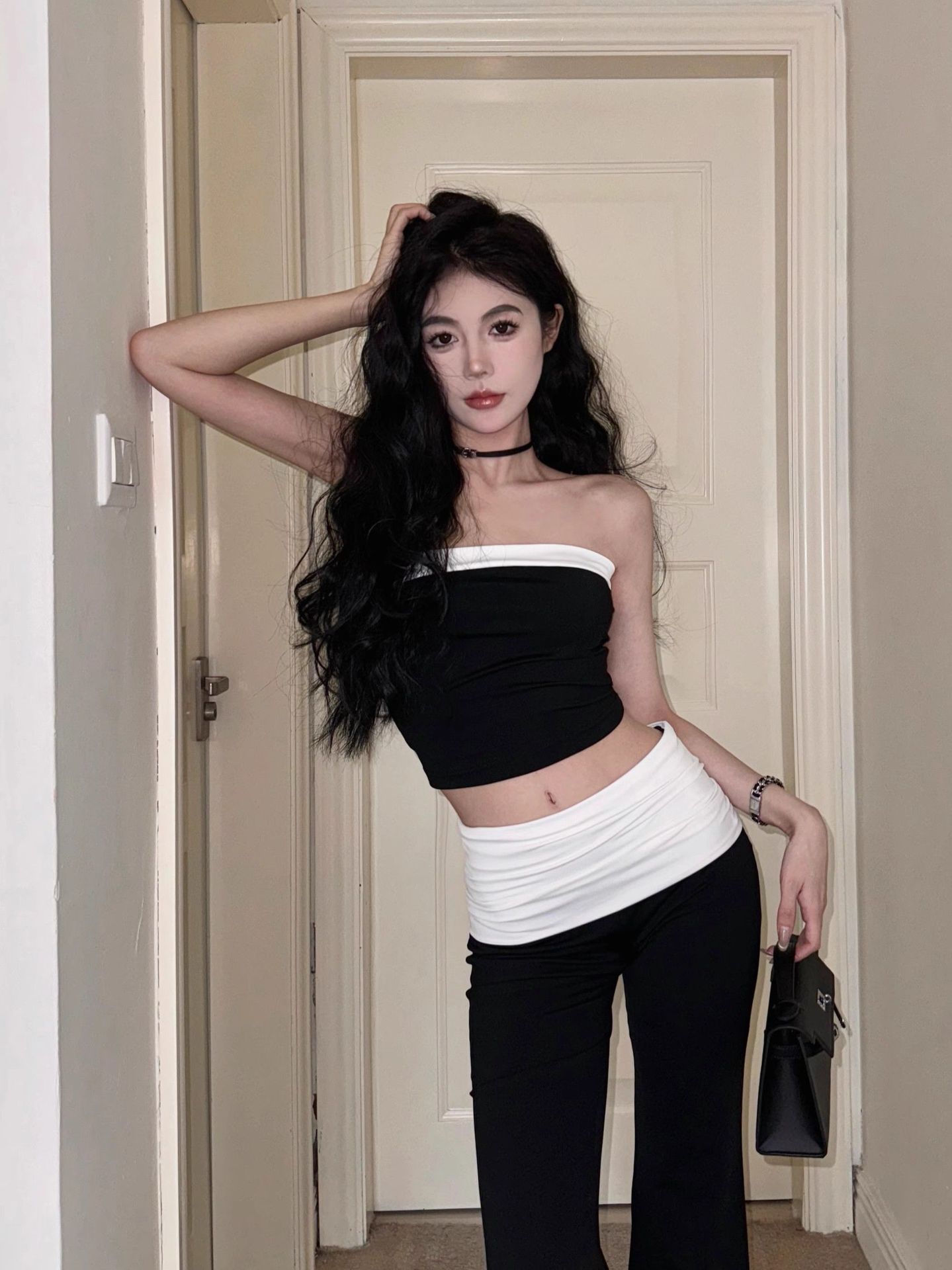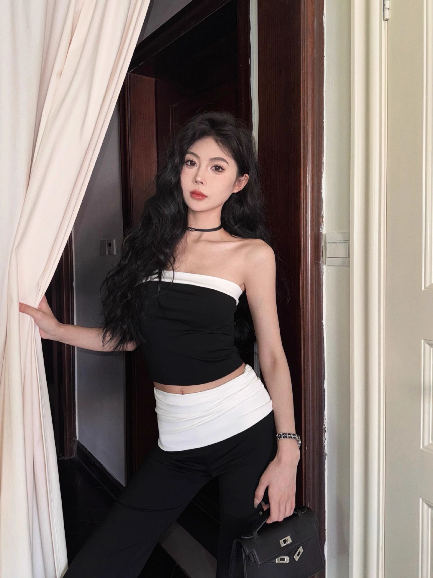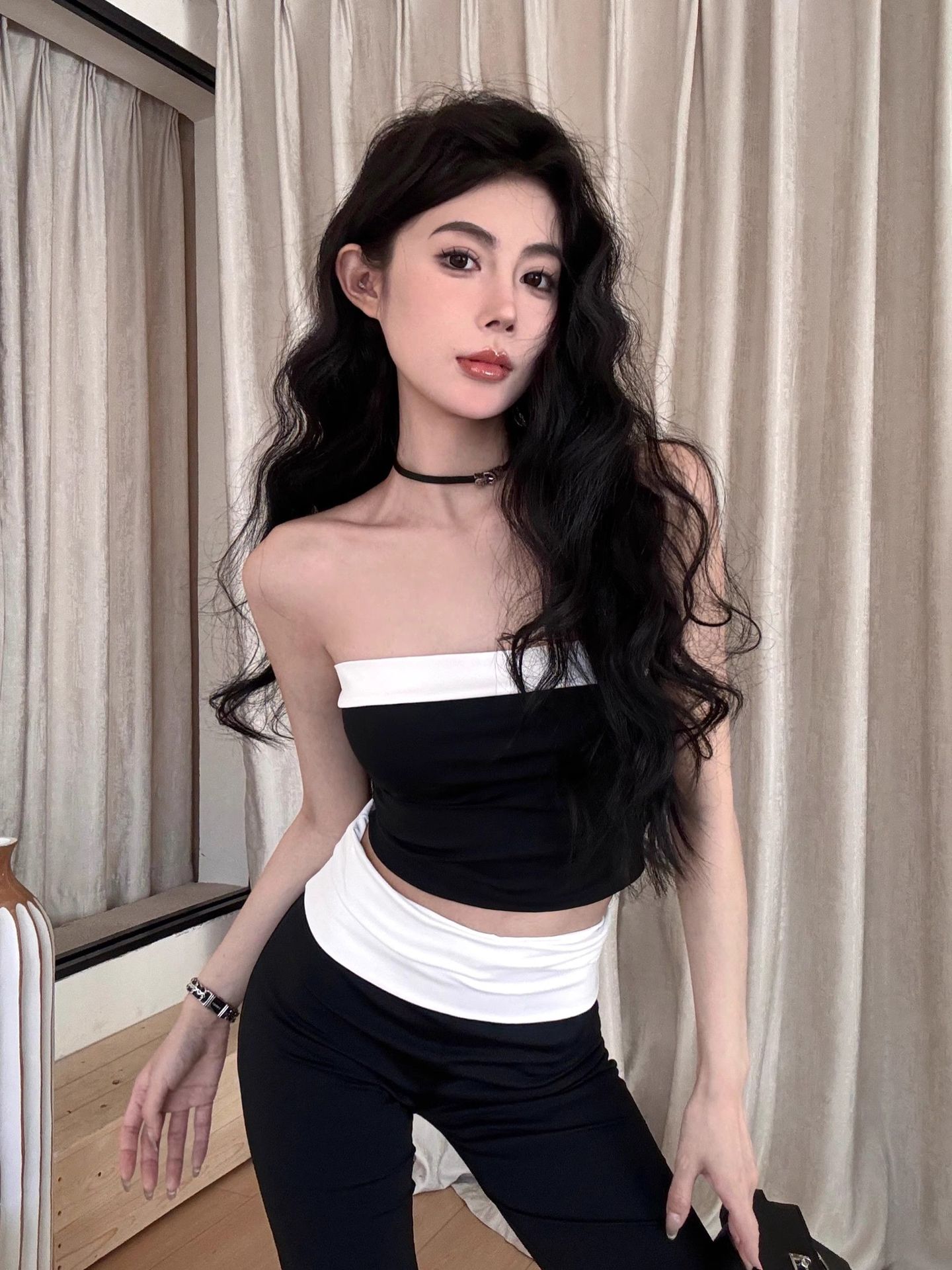 핫 걸스 스트랩리스 탑 여름 세트 여성의 2025 새로운 패션 트럼펫 캐주얼 바지 디자인 틈새 투피스 세트스토어 가기