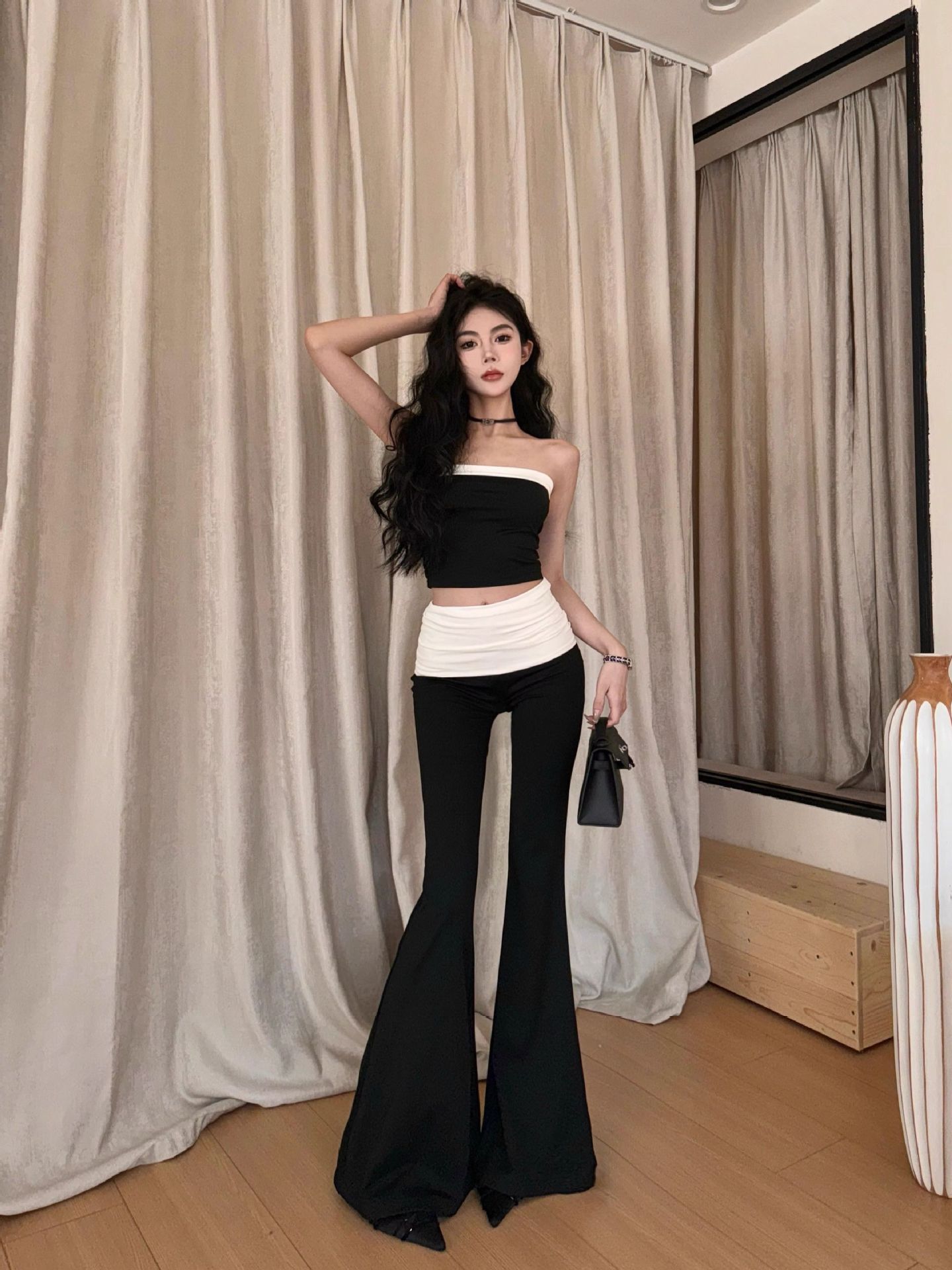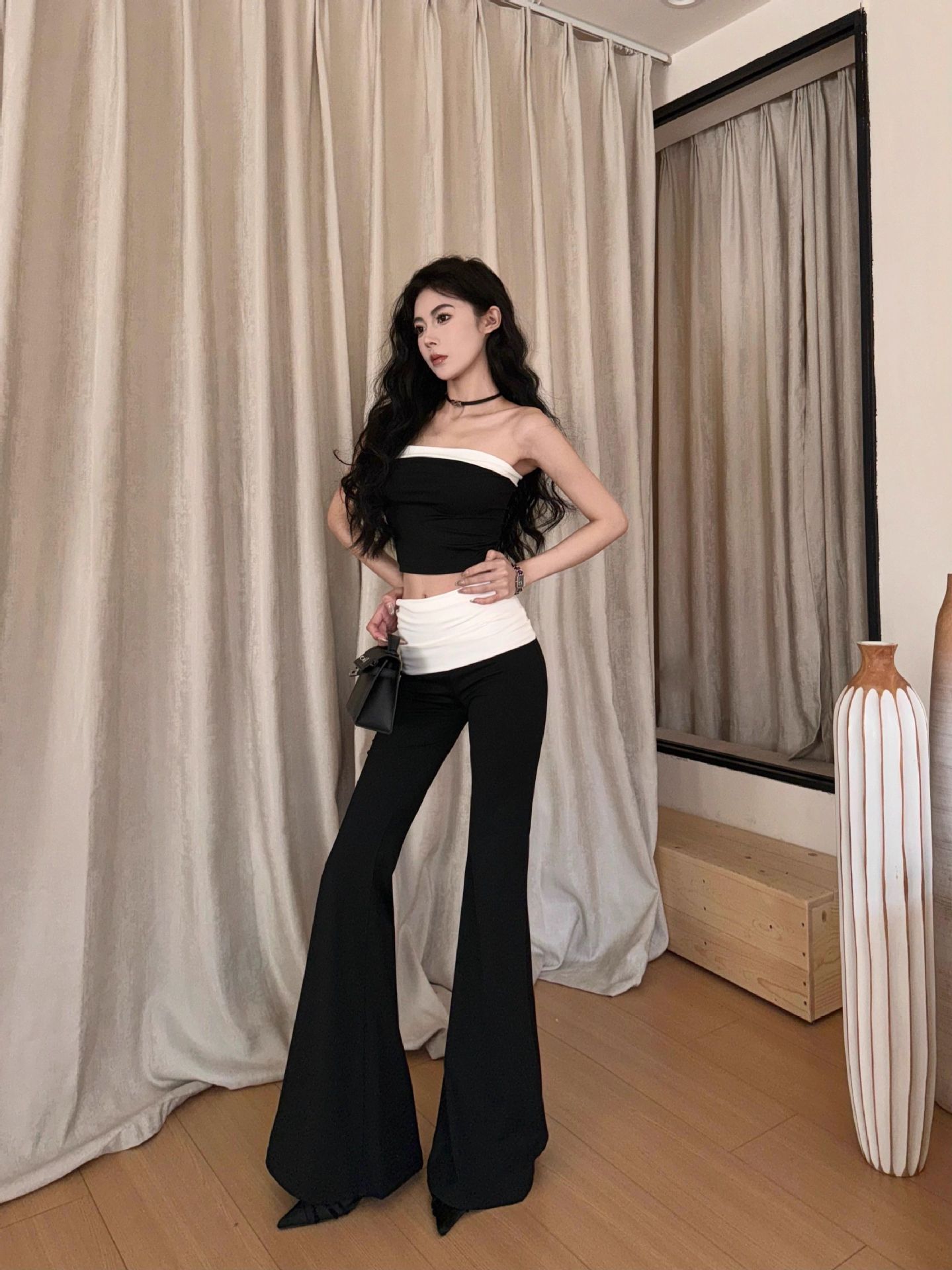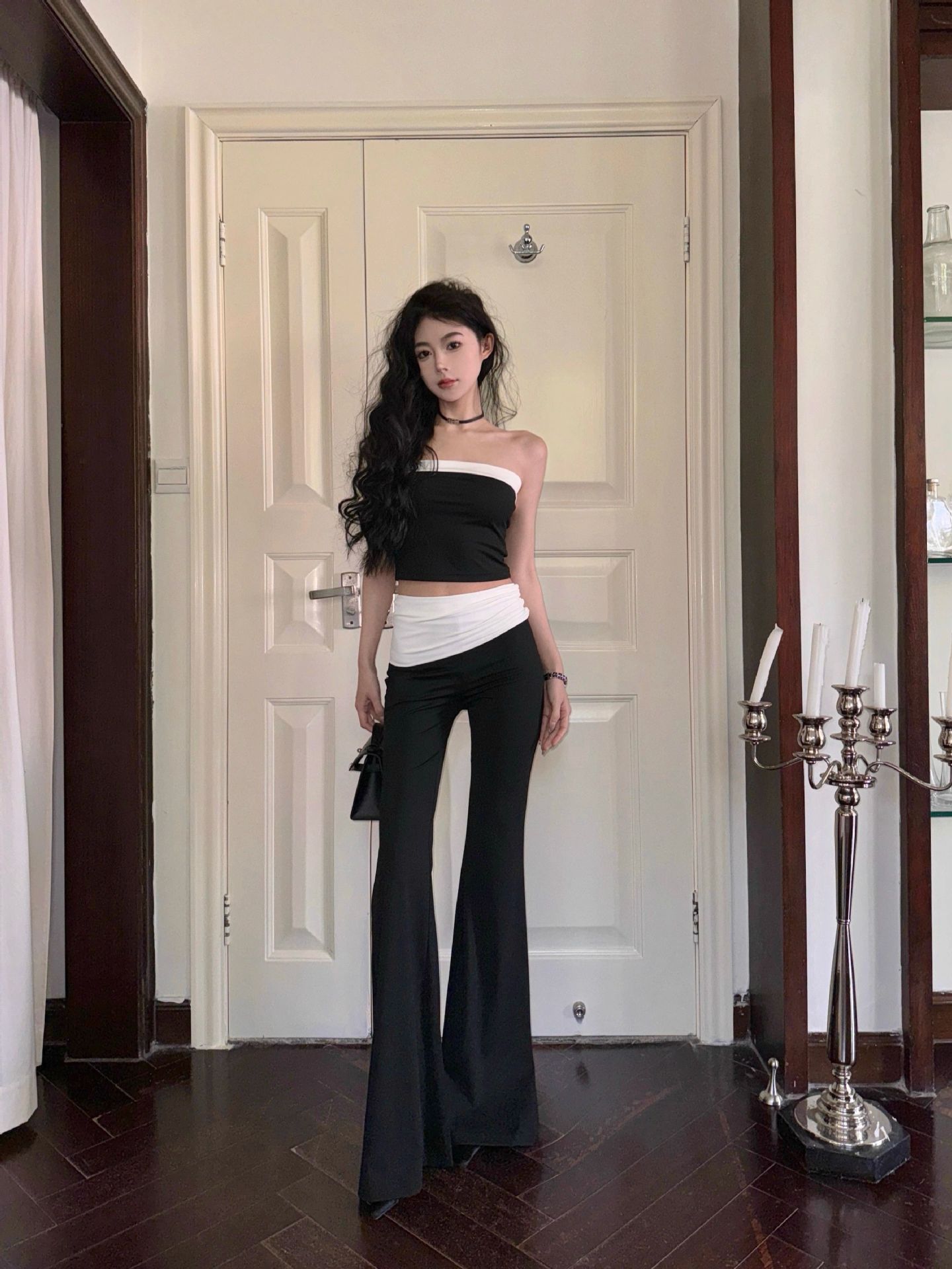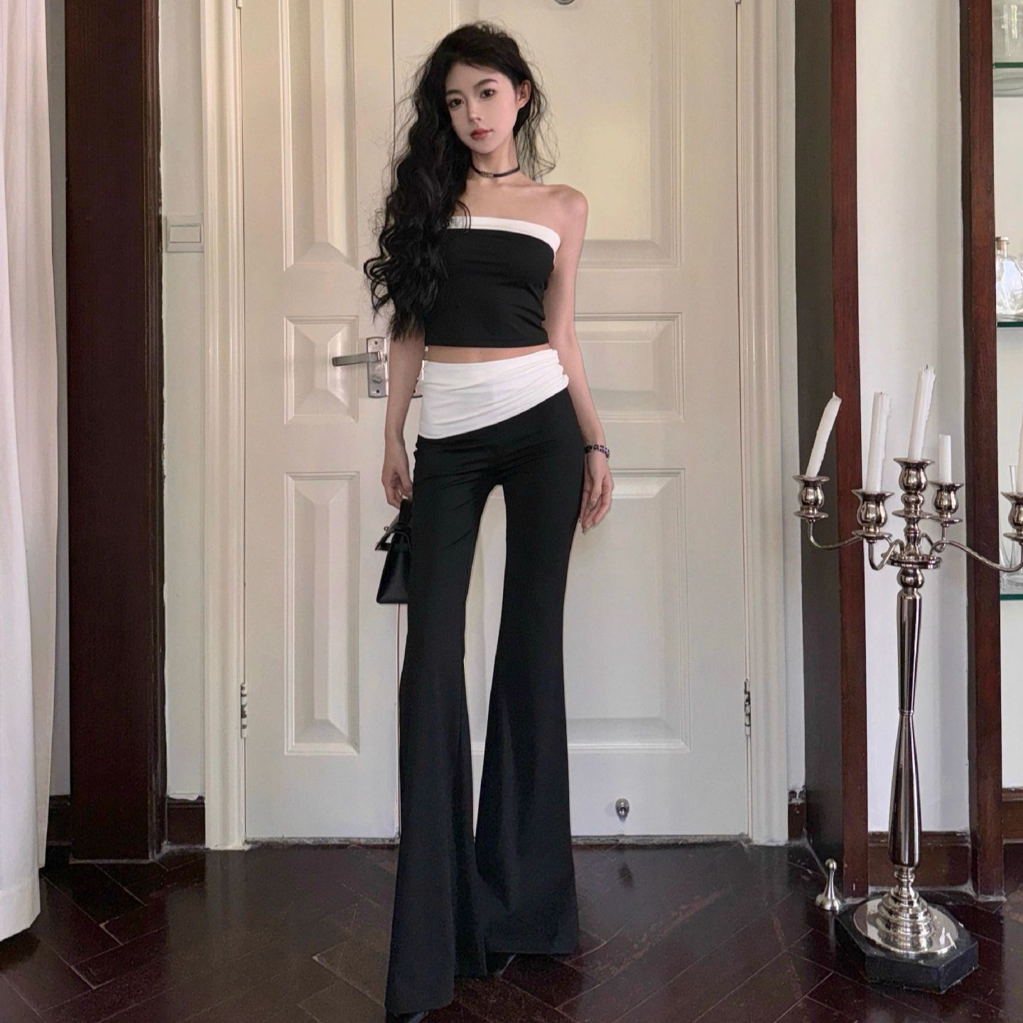 핫 걸스 스트랩리스 탑 여름 세트 여성의 2025 새로운 패션 트럼펫 캐주얼 바지 디자인 틈새 투피스 세트