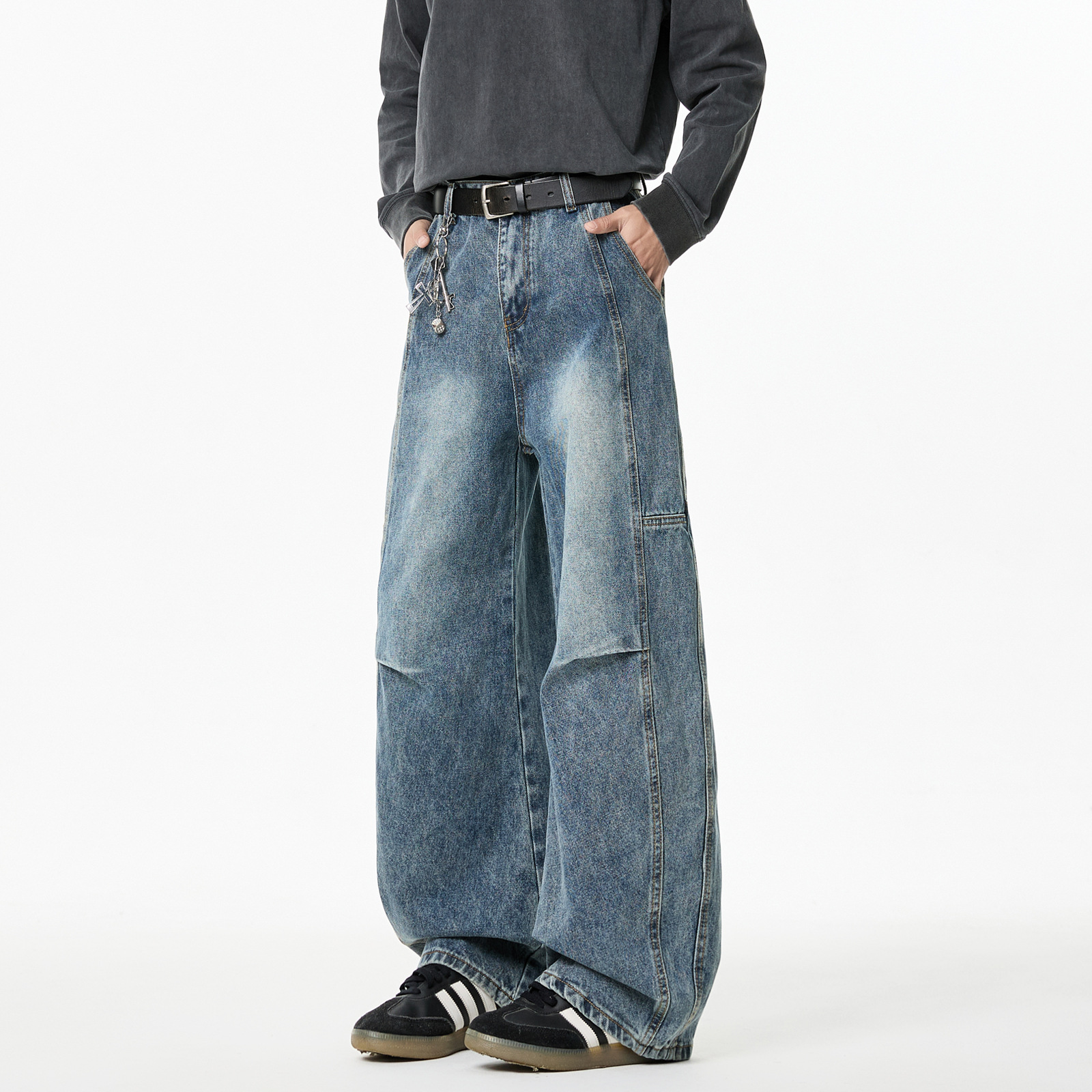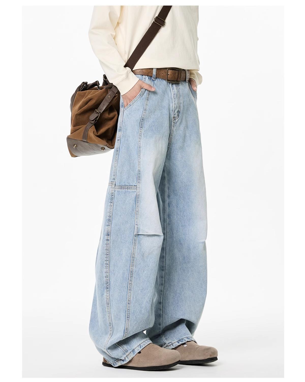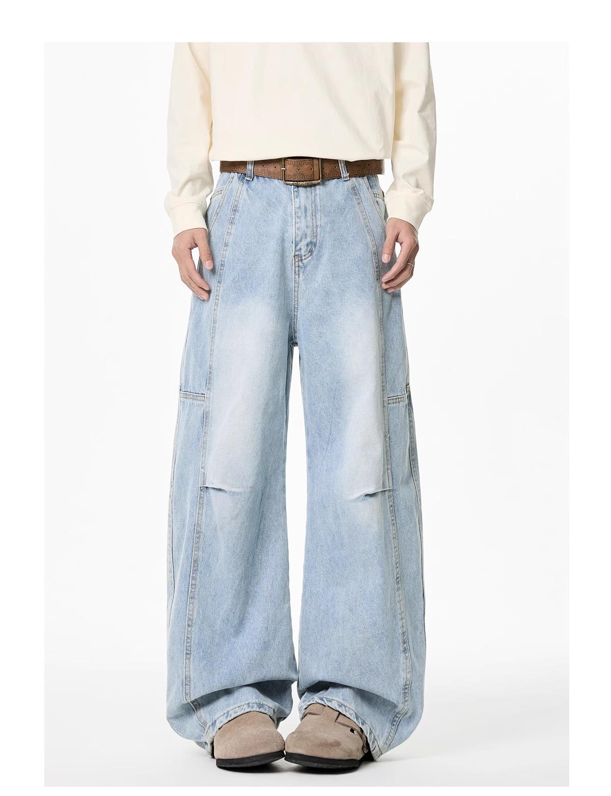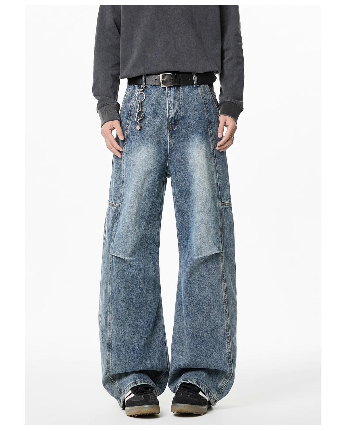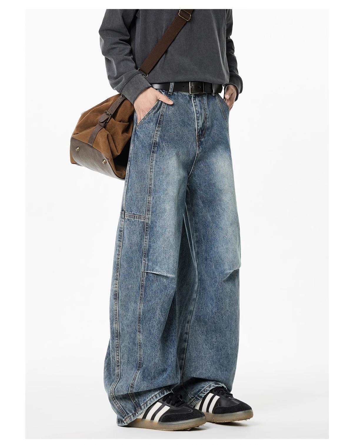 세탁 된 청바지 남성용 스트레이트 루즈 해체 된 Machete 와이드 레그 아메리칸 스타일 하이 스트리트 팬츠 트렌디 한 브랜드 패치 워크 바지스토어 가기