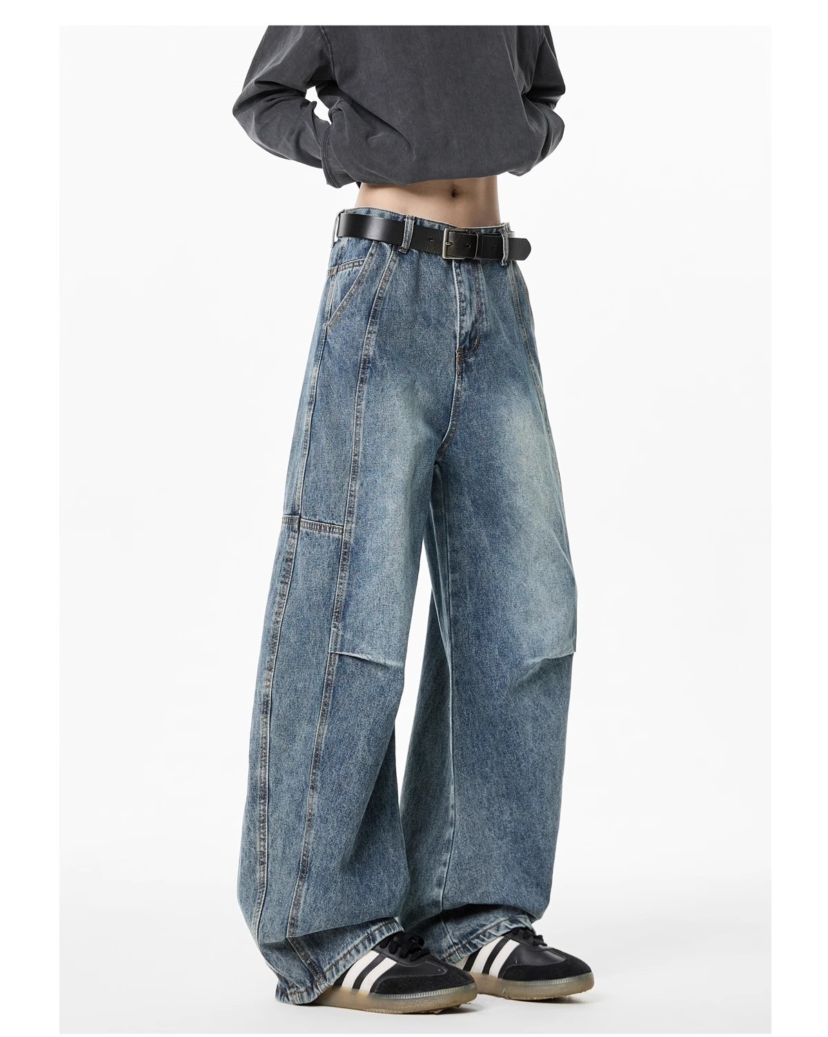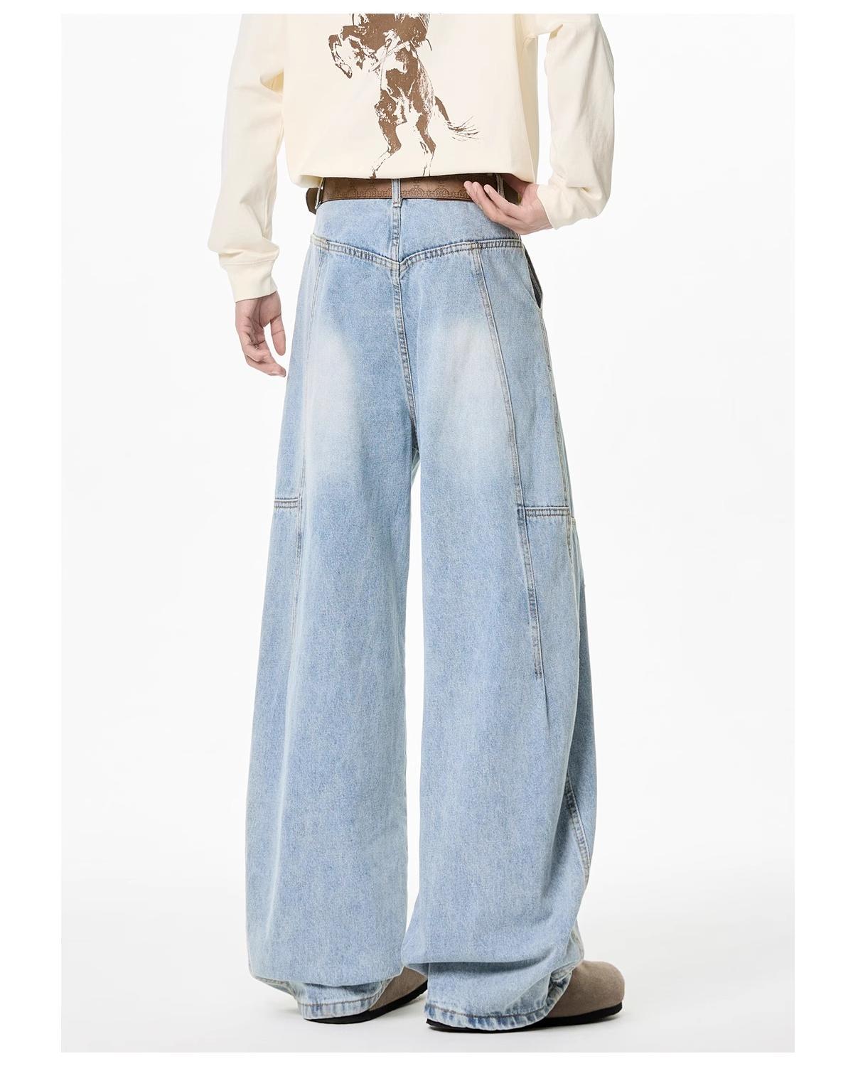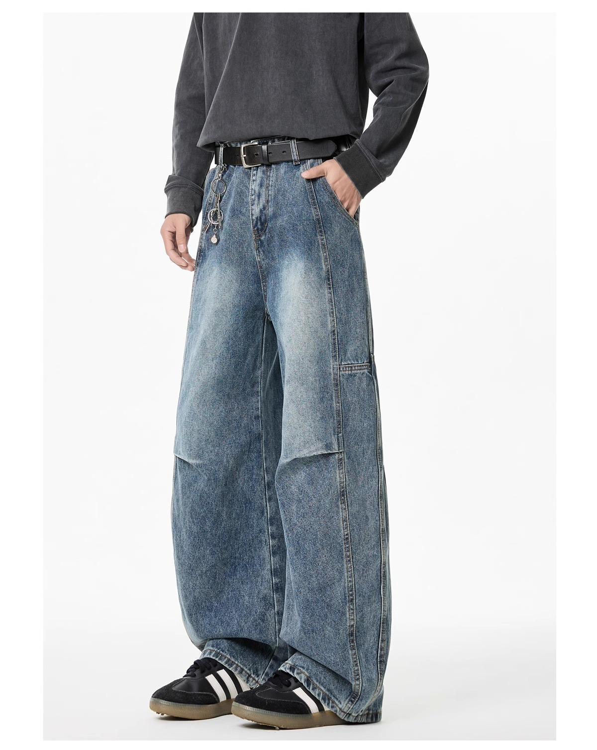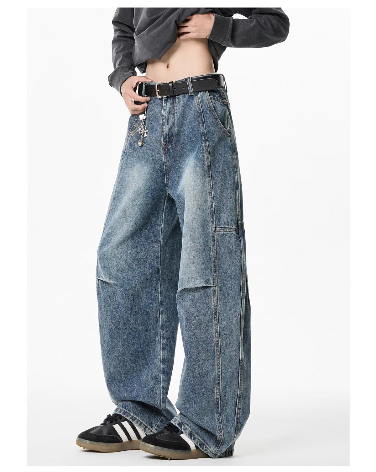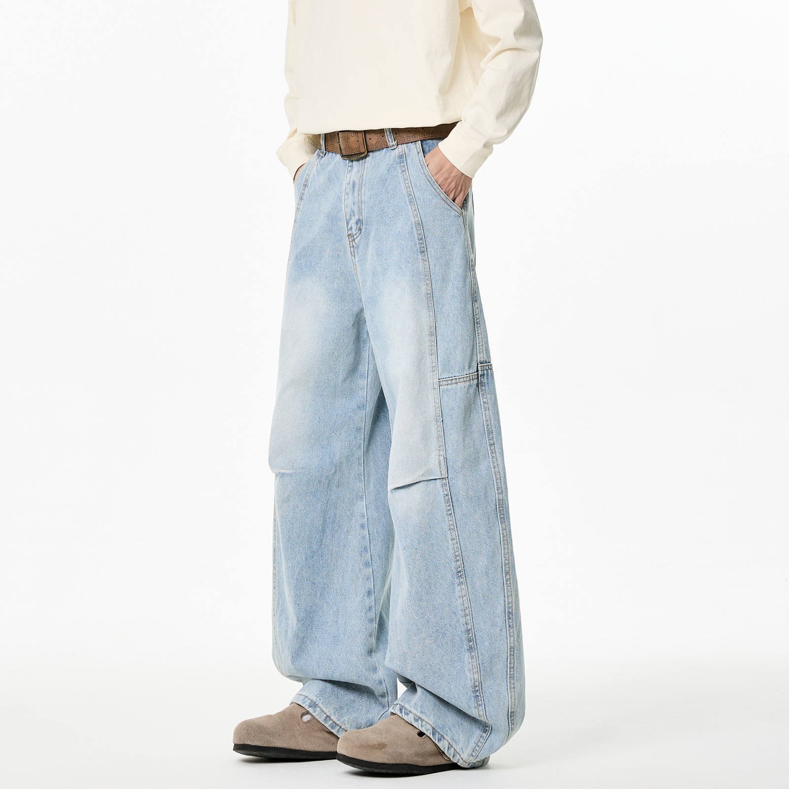세탁 된 청바지 남성용 스트레이트 루즈 해체 된 Machete 와이드 레그 아메리칸 스타일 하이 스트리트 팬츠 트렌디 한 브랜드 패치 워크 바지스토어 가기