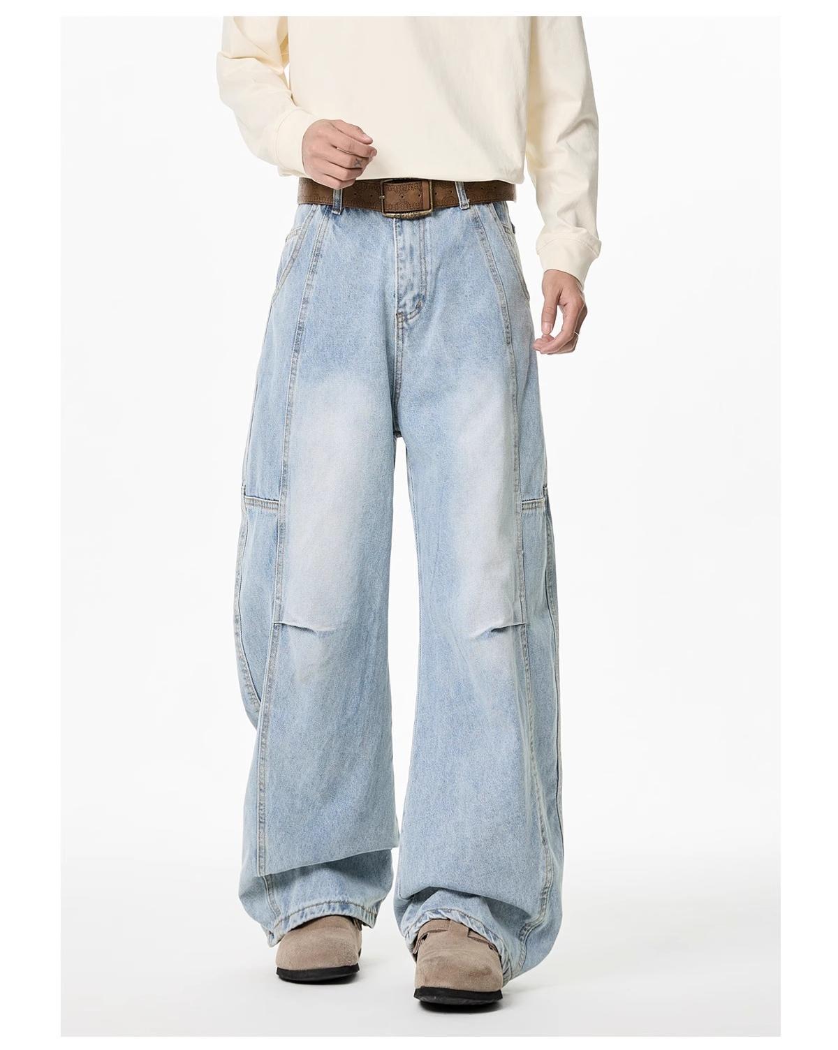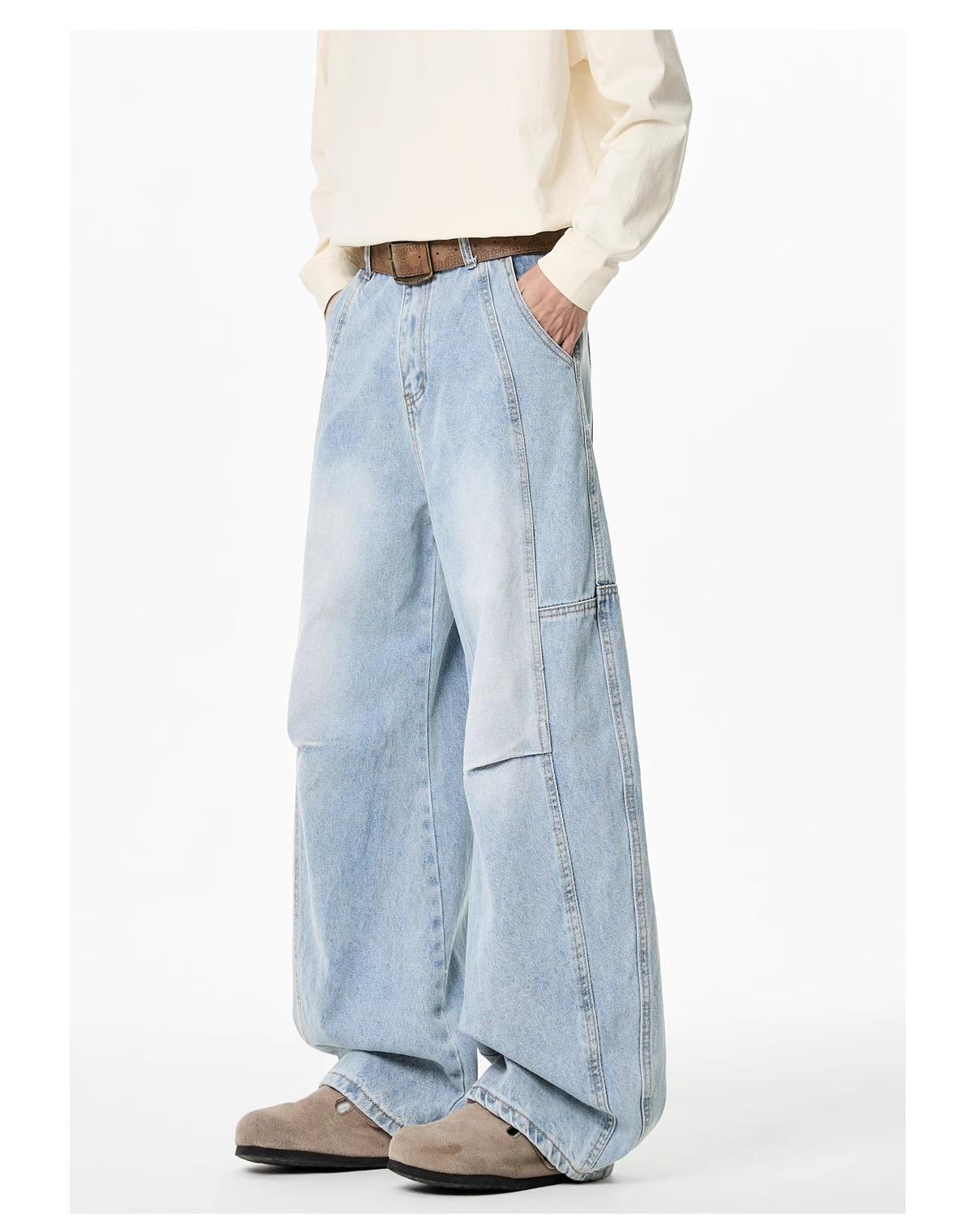 세탁 된 청바지 남성용 스트레이트 루즈 해체 된 Machete 와이드 레그 아메리칸 스타일 하이 스트리트 팬츠 트렌디 한 브랜드 패치 워크 바지
