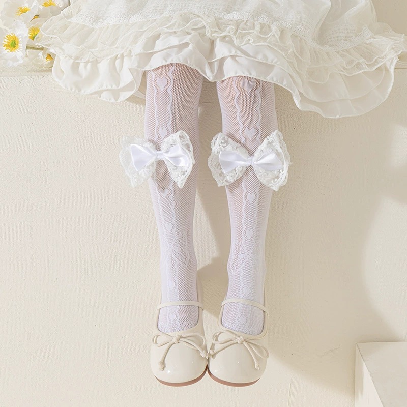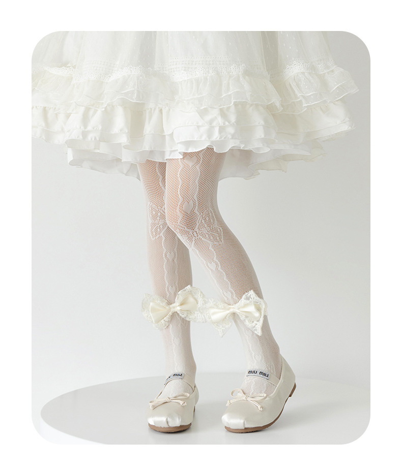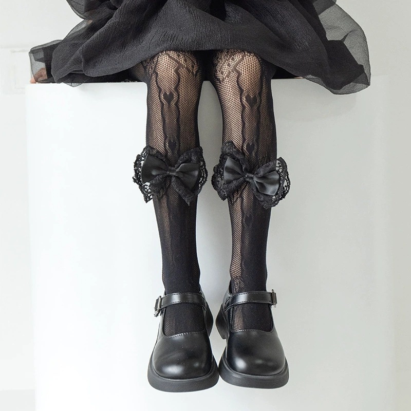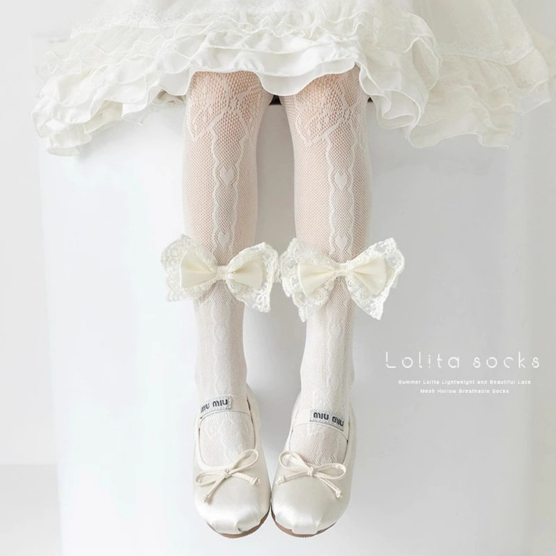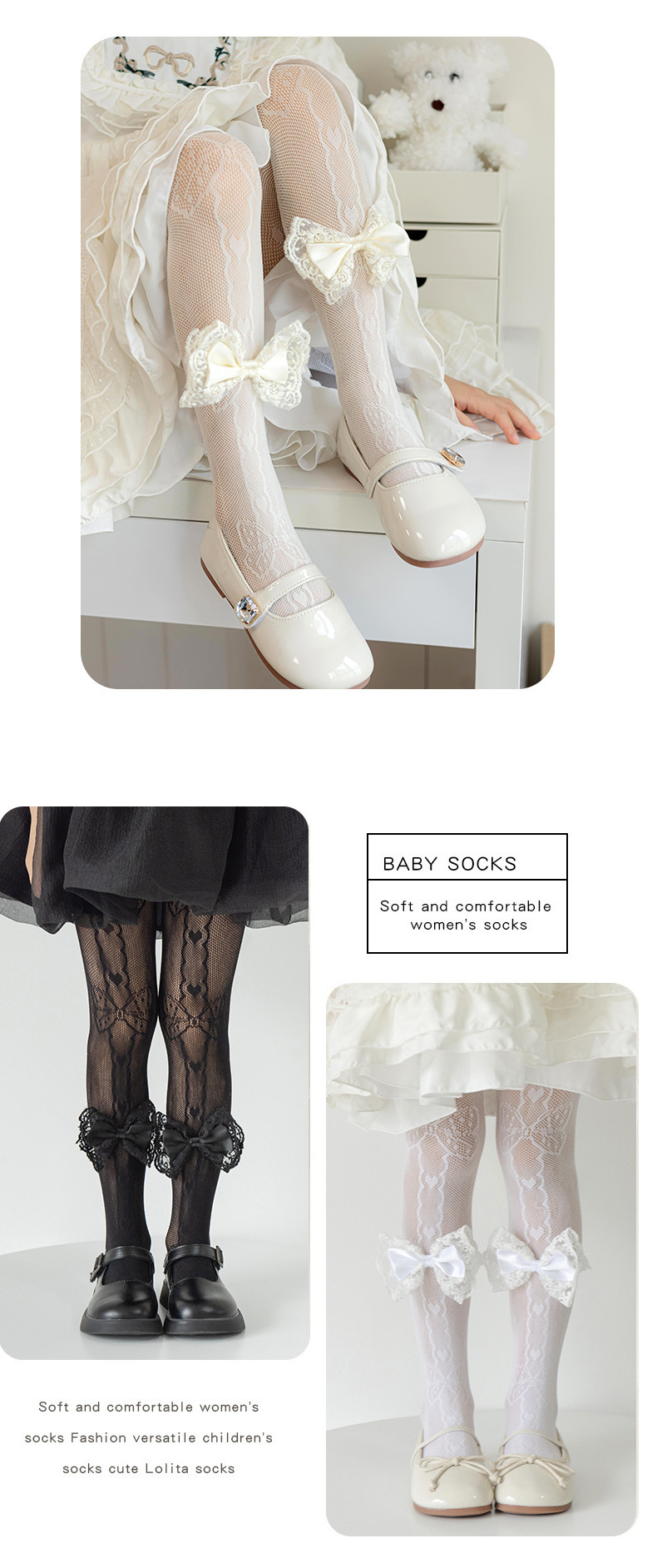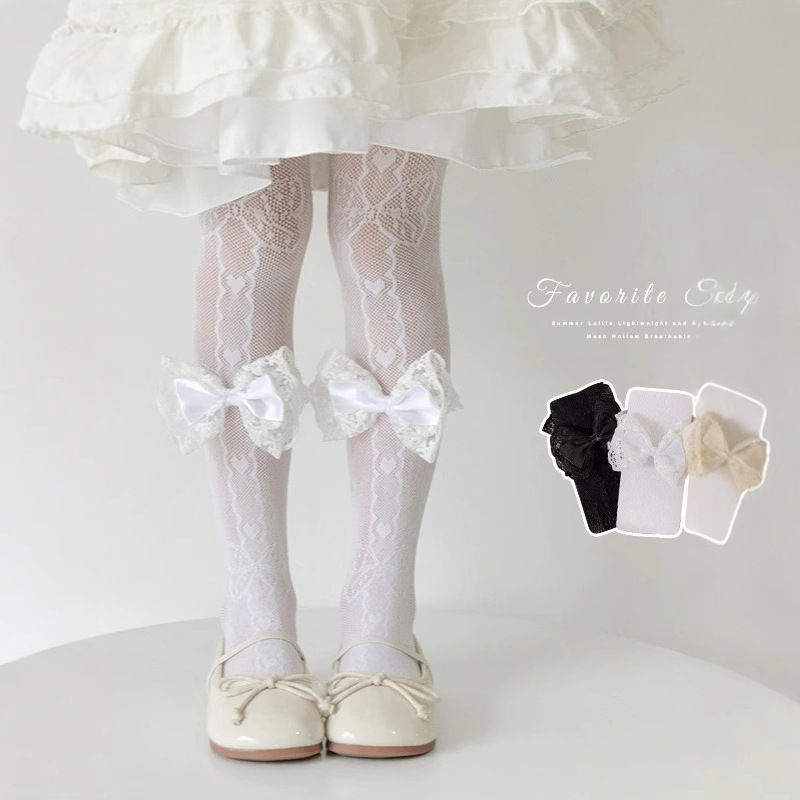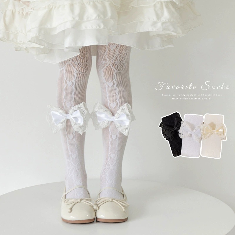 소녀 로리타 보우 메쉬 레깅스 레이스 자카드 롱 배럴 일본 복장 춤 공주 팬티 스타킹