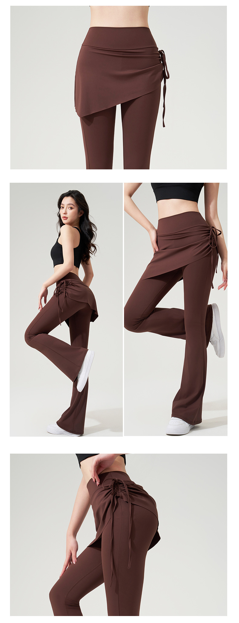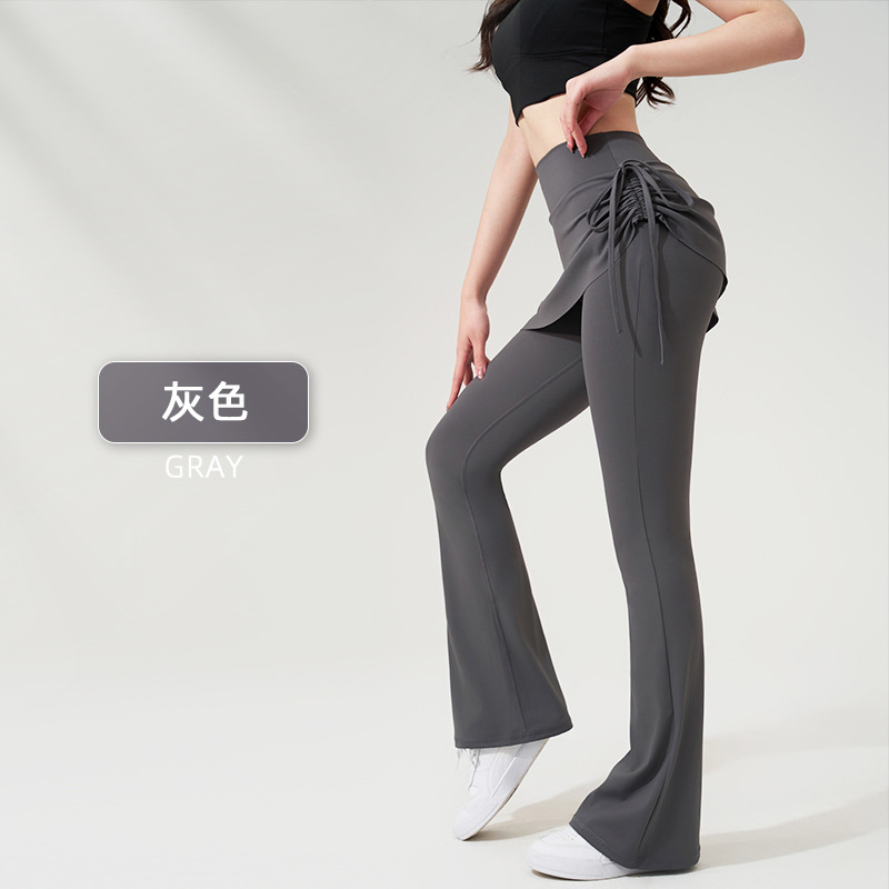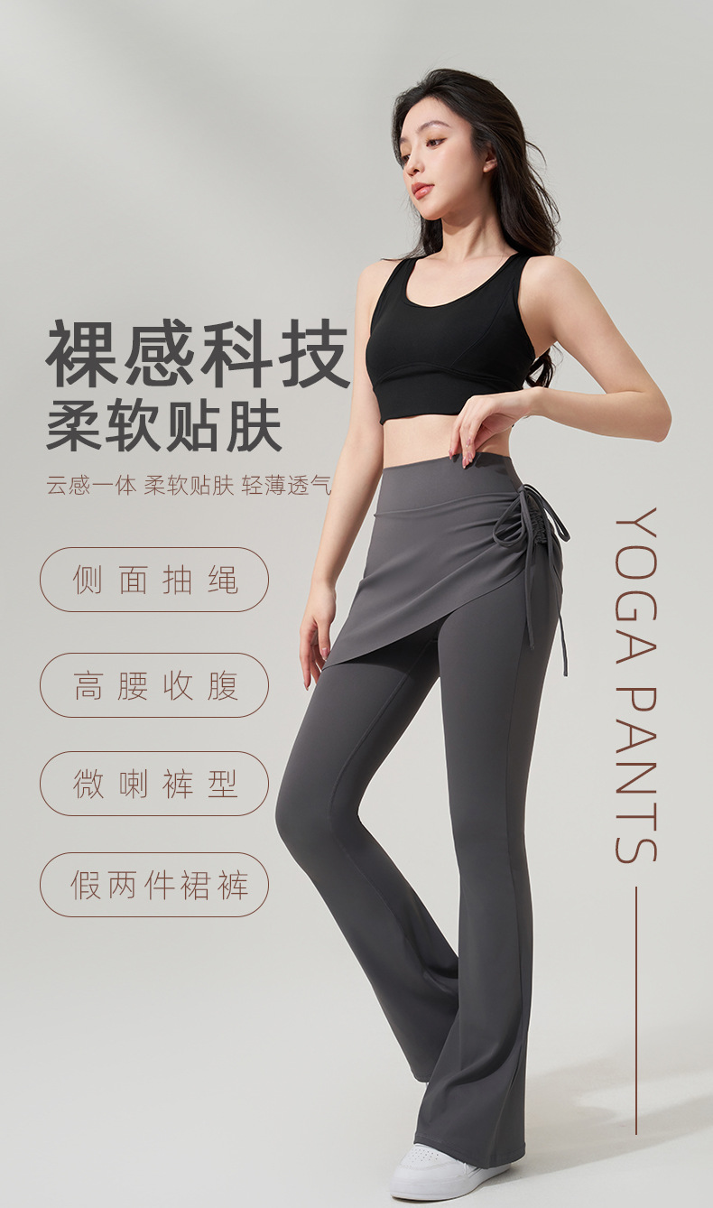 벌거 벗은 요가 플래 팬츠 가짜 2 조각 Culottes 사이드 드로우 스트링 높은 허리 엉덩이 리프팅 스포츠 레저 피트니스 요가 바지