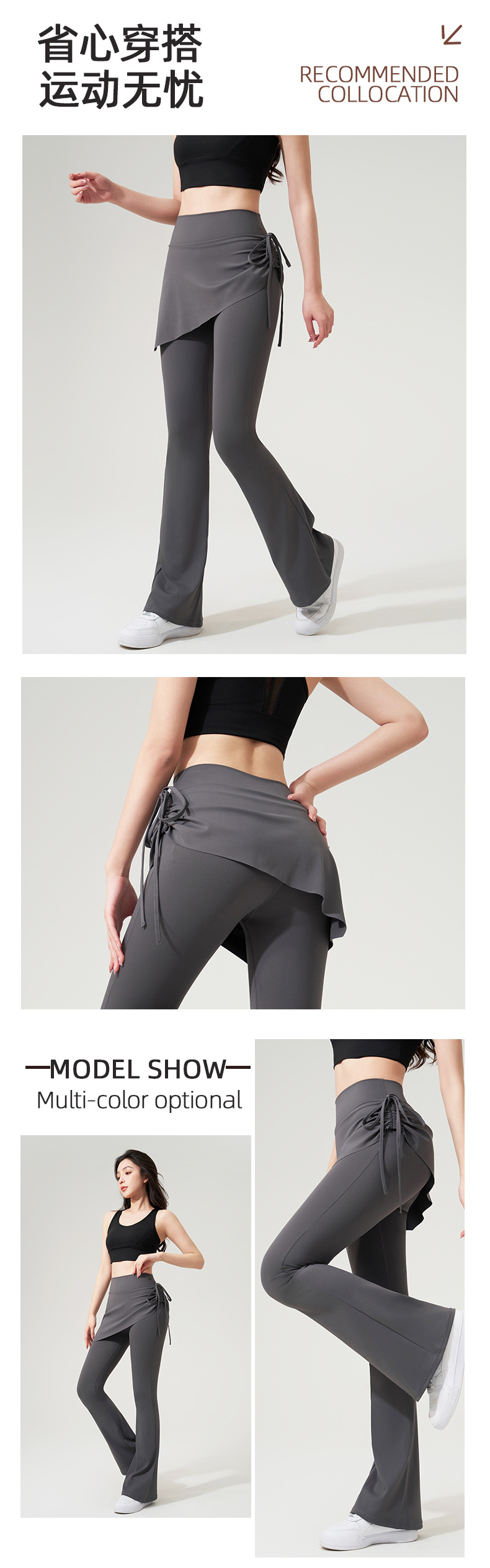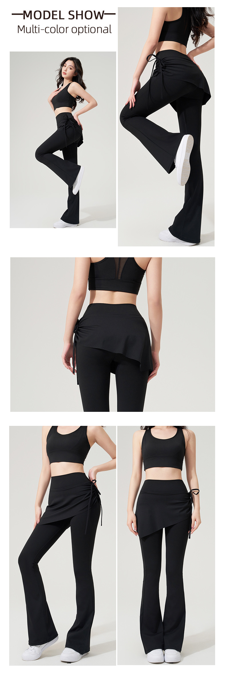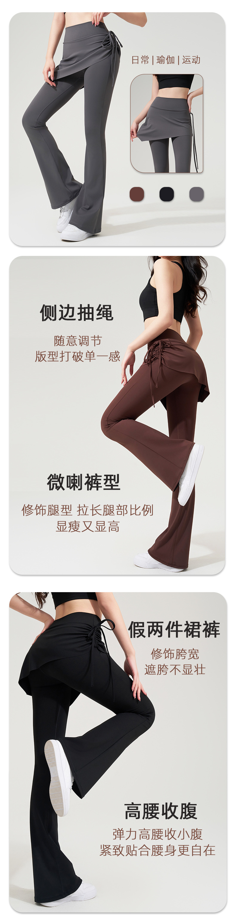 벌거 벗은 요가 플래 팬츠 가짜 2 조각 Culottes 사이드 드로우 스트링 높은 허리 엉덩이 리프팅 스포츠 레저 피트니스 요가 바지