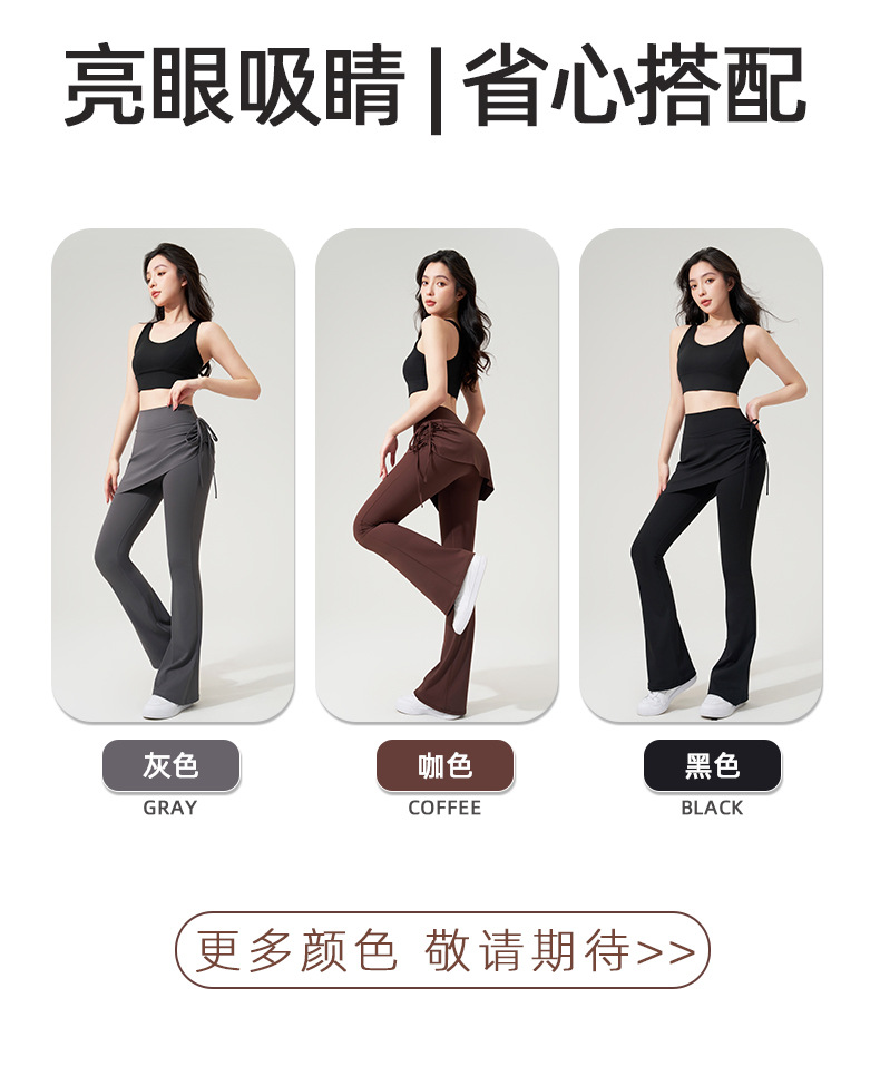 벌거 벗은 요가 플래 팬츠 가짜 2 조각 Culottes 사이드 드로우 스트링 높은 허리 엉덩이 리프팅 스포츠 레저 피트니스 요가 바지스토어 가기