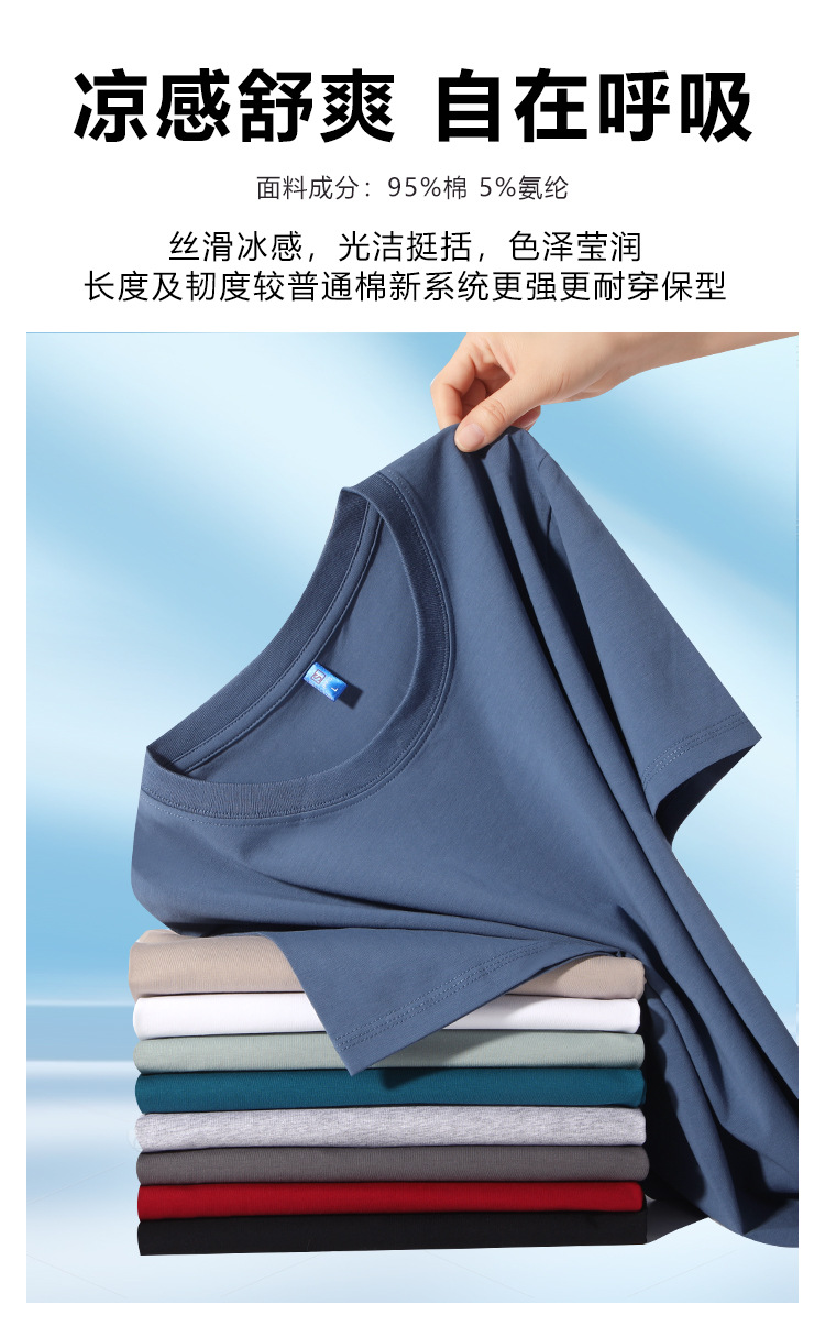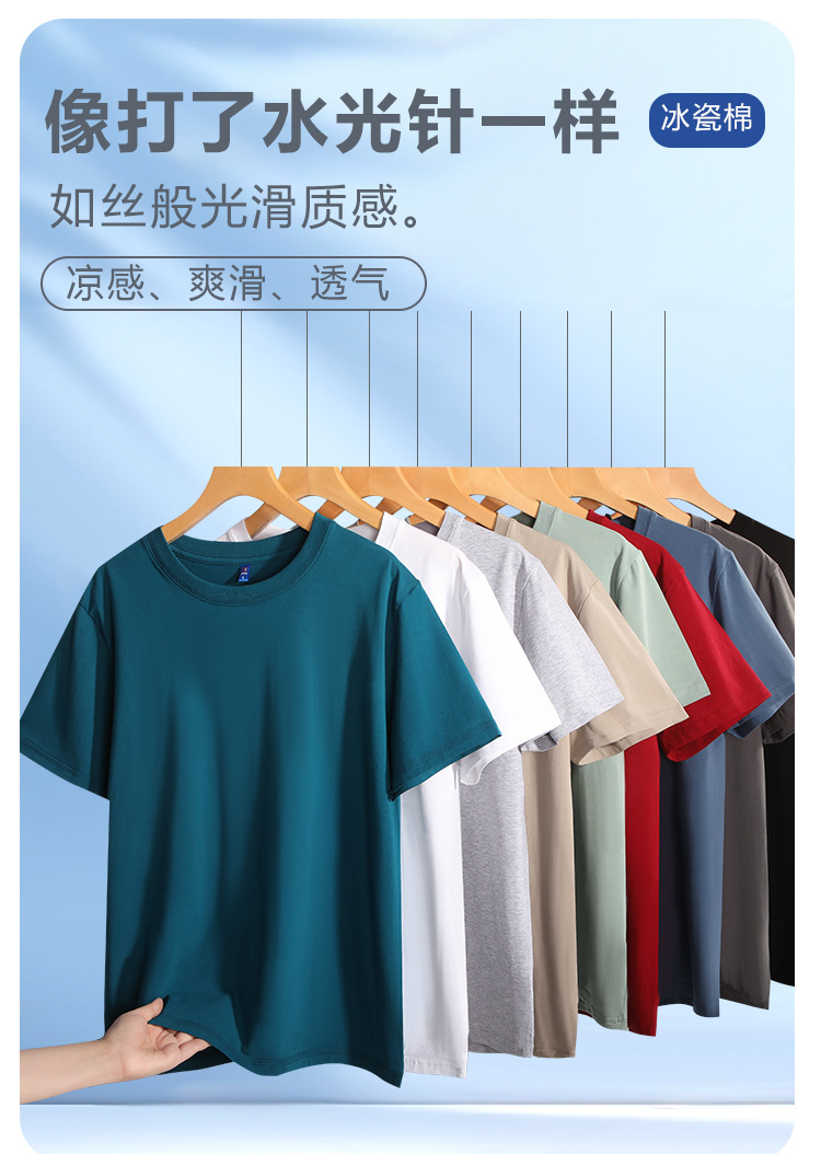 2026년 신제품 190g 아이스 도자기 면 남성용 티셔츠, 숄더라인 정형, 반팔, 시원하고 통기성 좋은, 라운드넥, 단색, 패셔너블하고 캐주얼하며 다용도