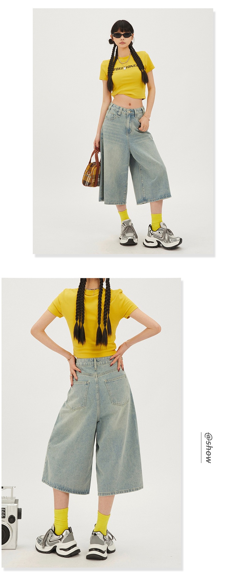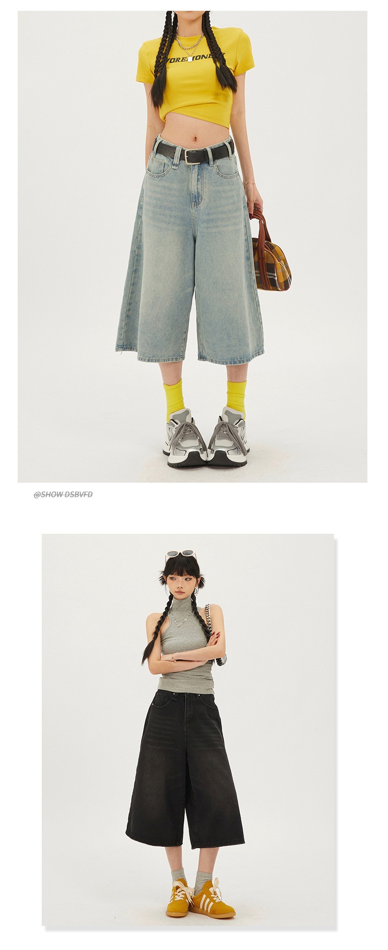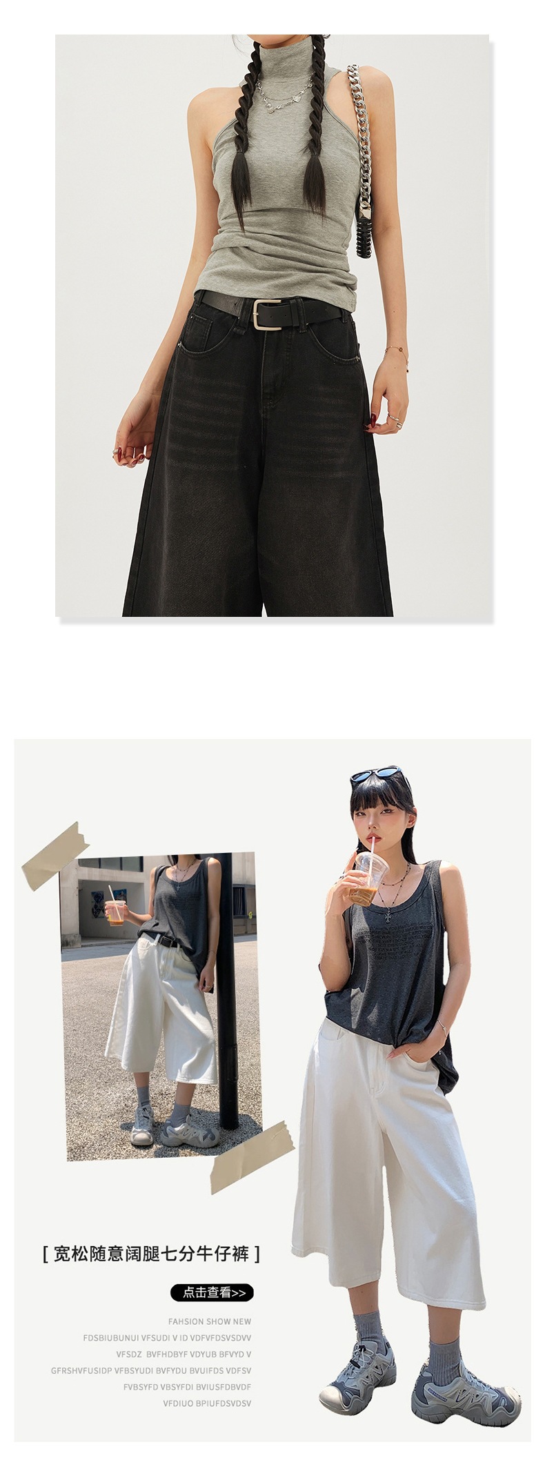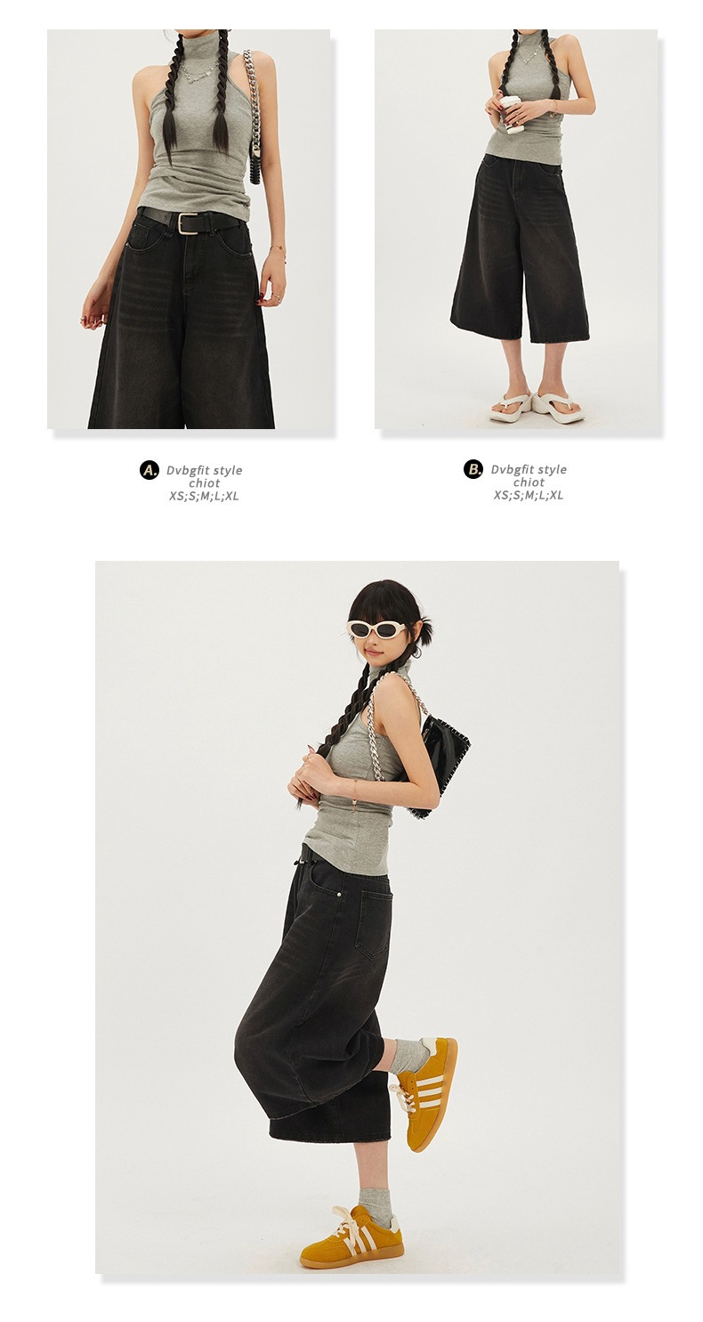 7 점 청바지 여자 하이 웨이스트 루즈 미드 길이 바지 뉴 올 매치 레트로 7 점 무릎 위 중립 와이드 레그 2025 슬림스토어 가기