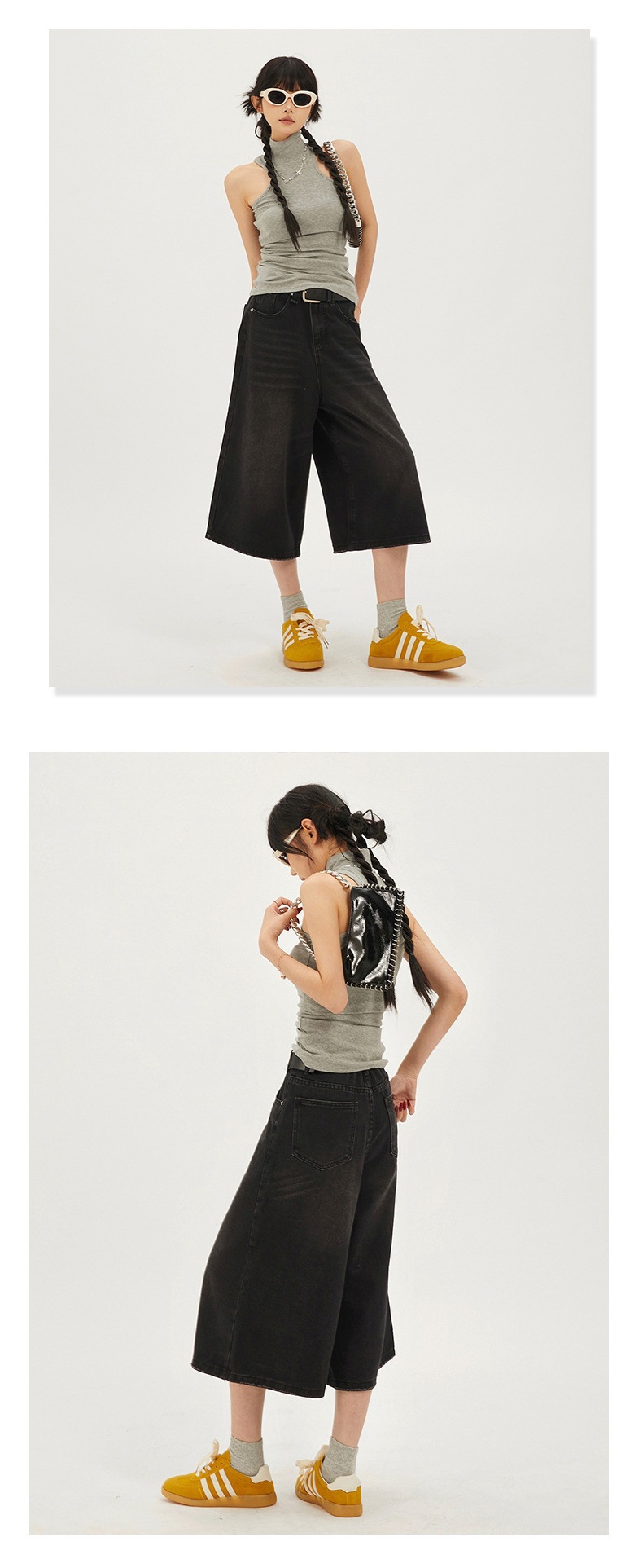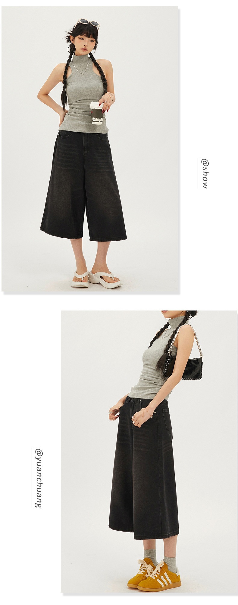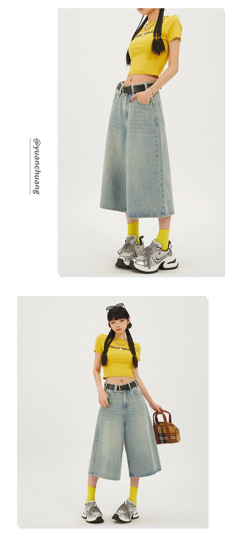 7 점 청바지 여자 하이 웨이스트 루즈 미드 길이 바지 뉴 올 매치 레트로 7 점 무릎 위 중립 와이드 레그 2025 슬림스토어 가기