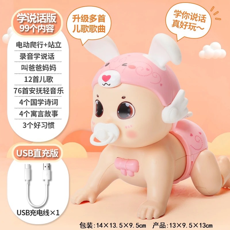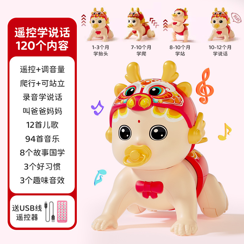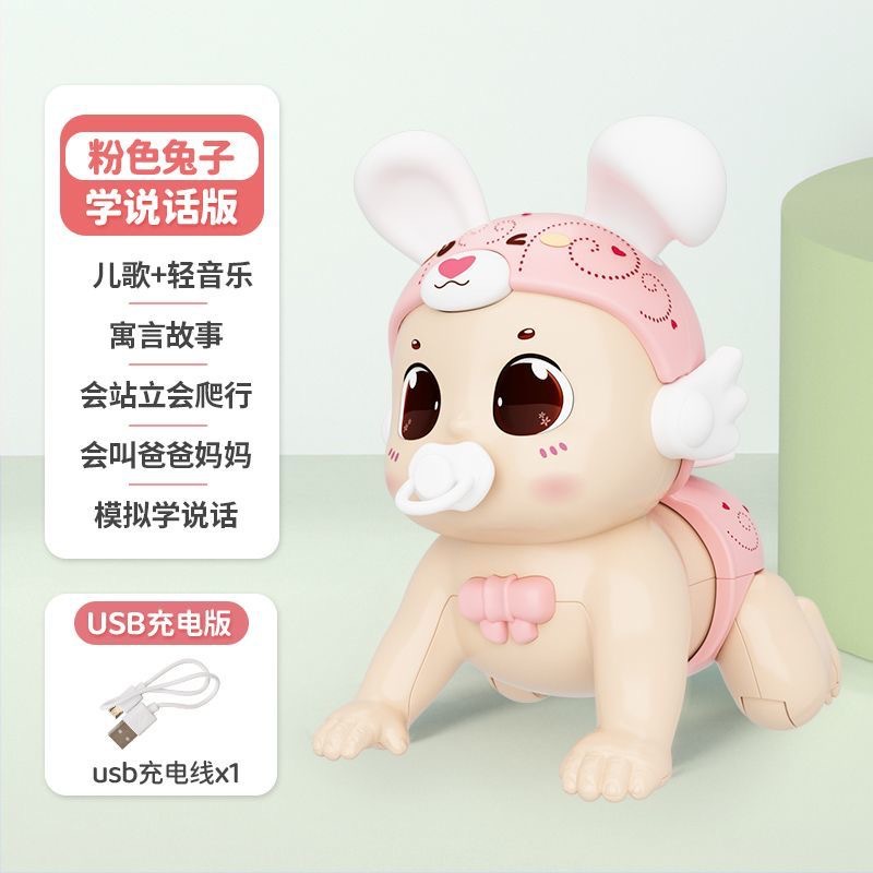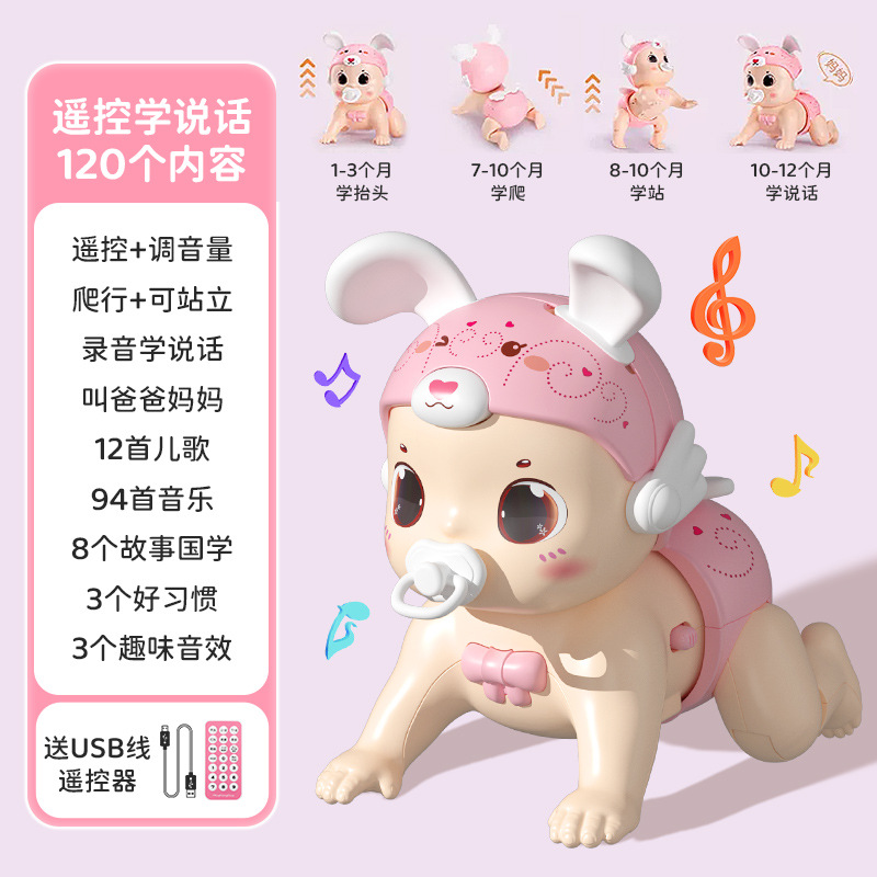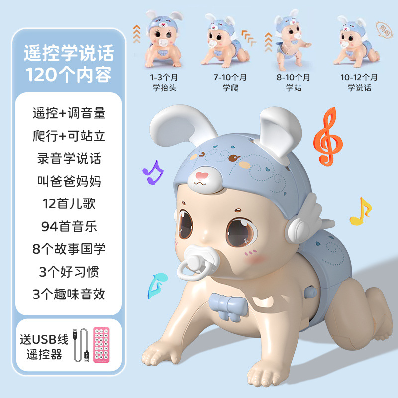 충전식 뮤직 크롤링 인형, 아기가 머리를 올리고 앉을 수 있도록 훈련하는 유아용 교육 완구, 아기 기어다니기 훈련용 장난감