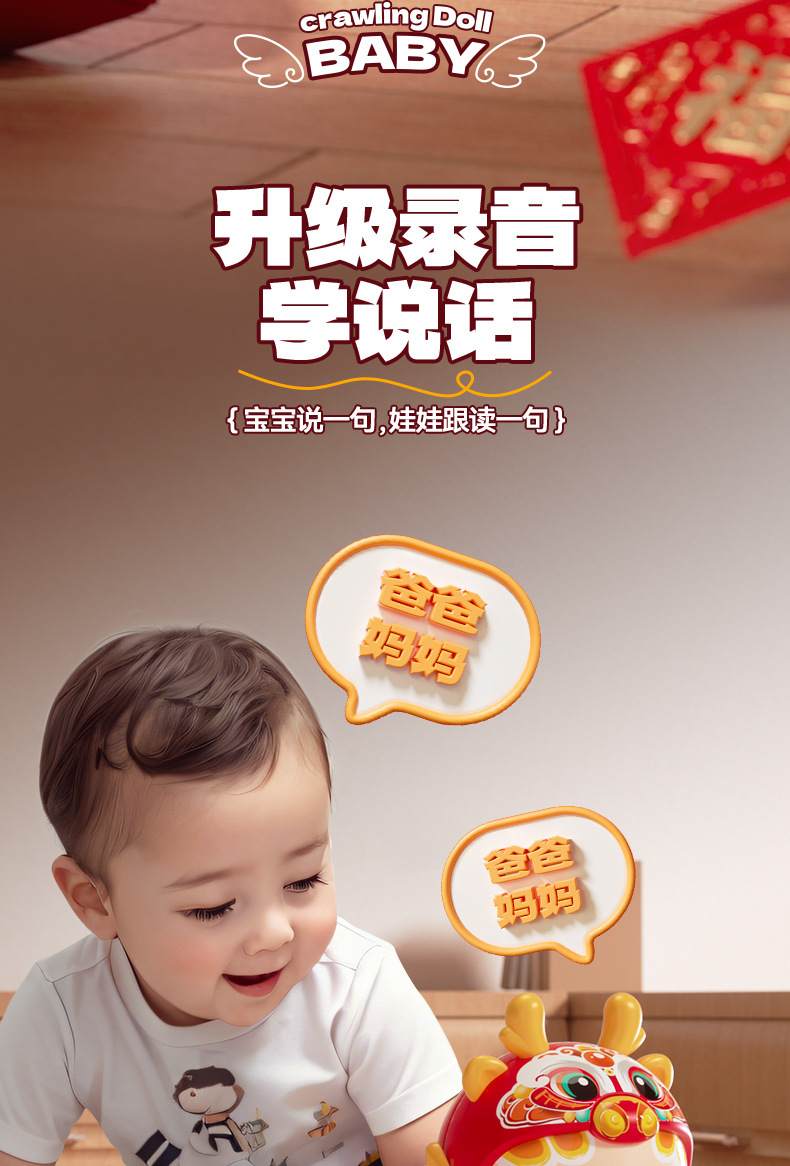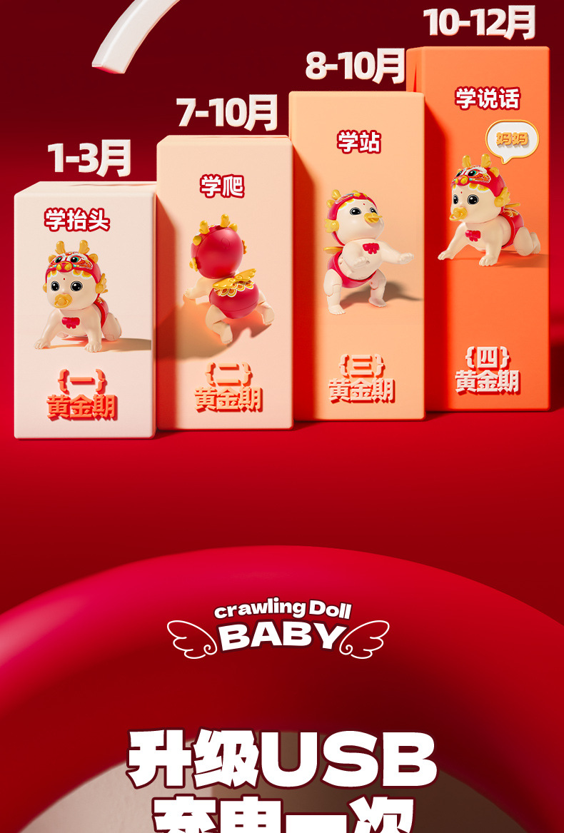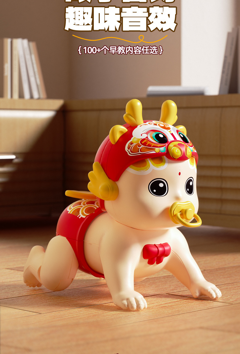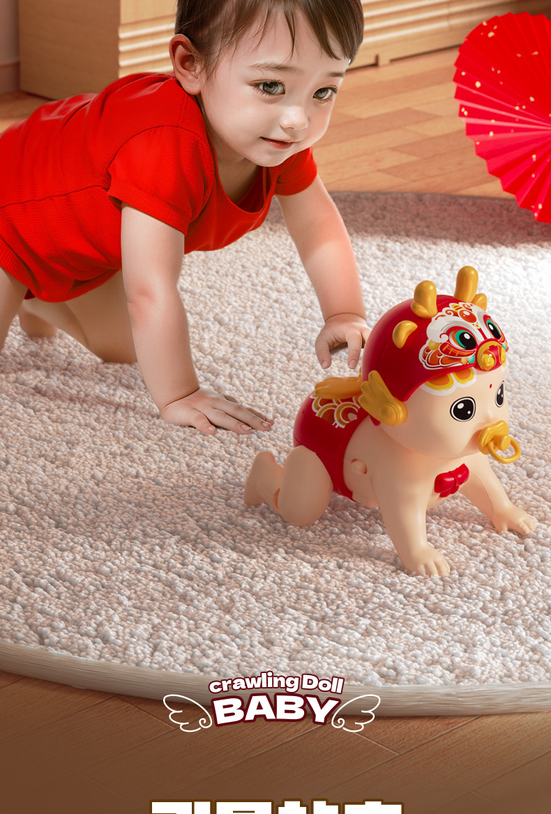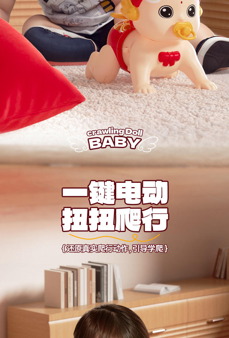 충전식 뮤직 크롤링 인형, 아기가 머리를 올리고 앉을 수 있도록 훈련하는 유아용 교육 완구, 아기 기어다니기 훈련용 장난감스토어 가기