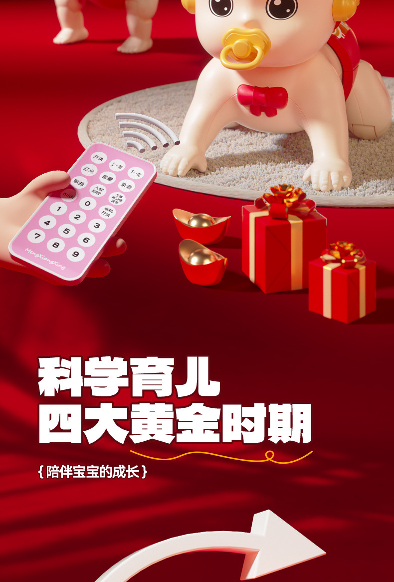 • 빨간색 복덩이 [말 따라 하기] 유아 교육 콘텐츠 + 자립 가능 + USB 충전