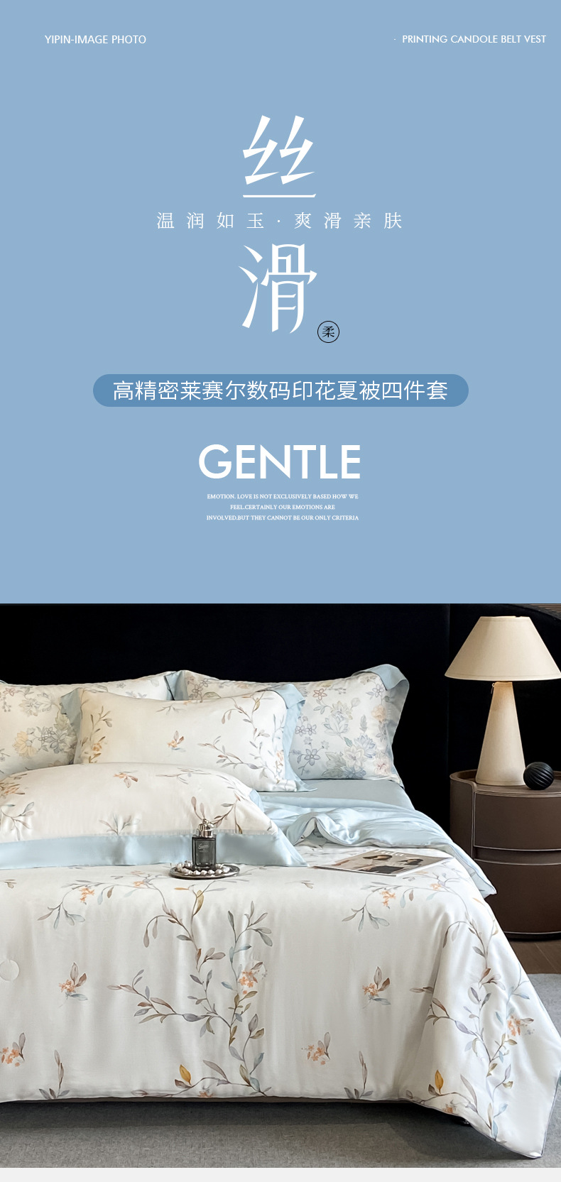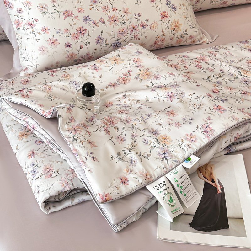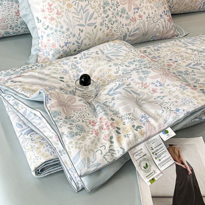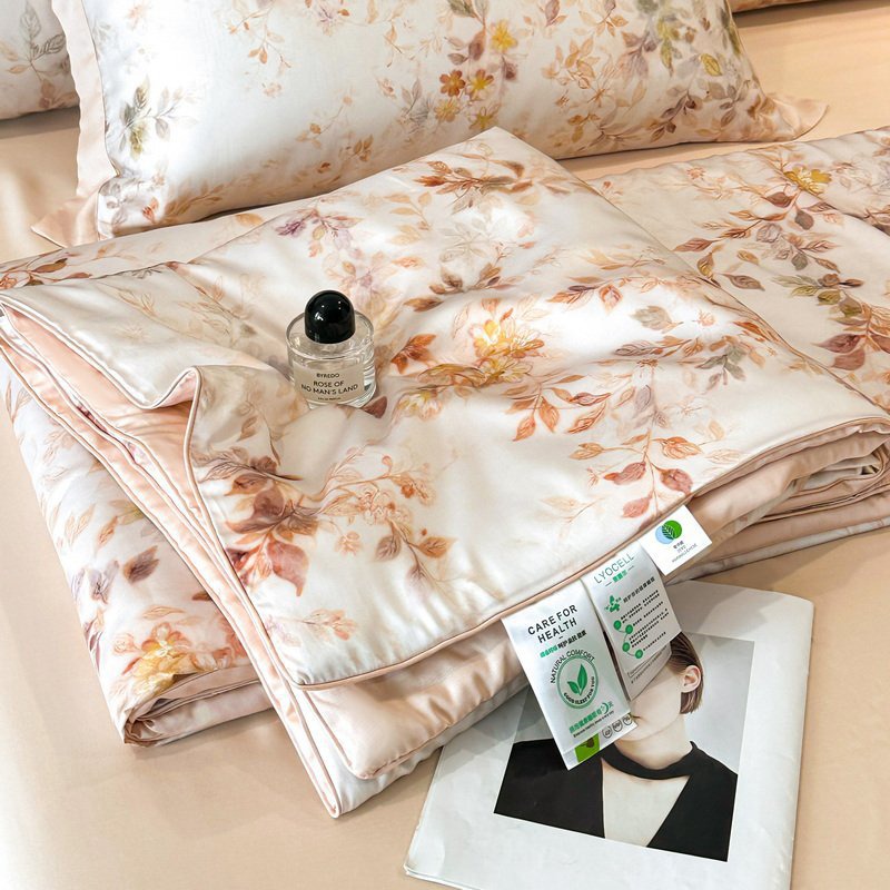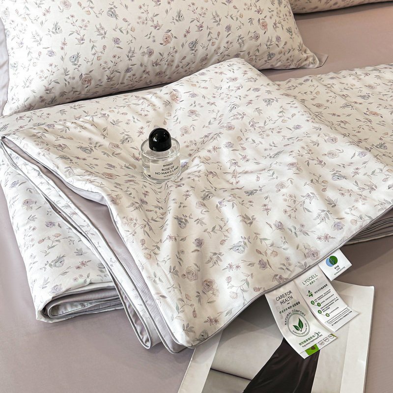 고급스러운 100% 라이오셀 텐셀 여름 이불, 시원한 아이스 실크 얇은 이불, 세탁기 사용 가능 에어컨 이불 4종 세트