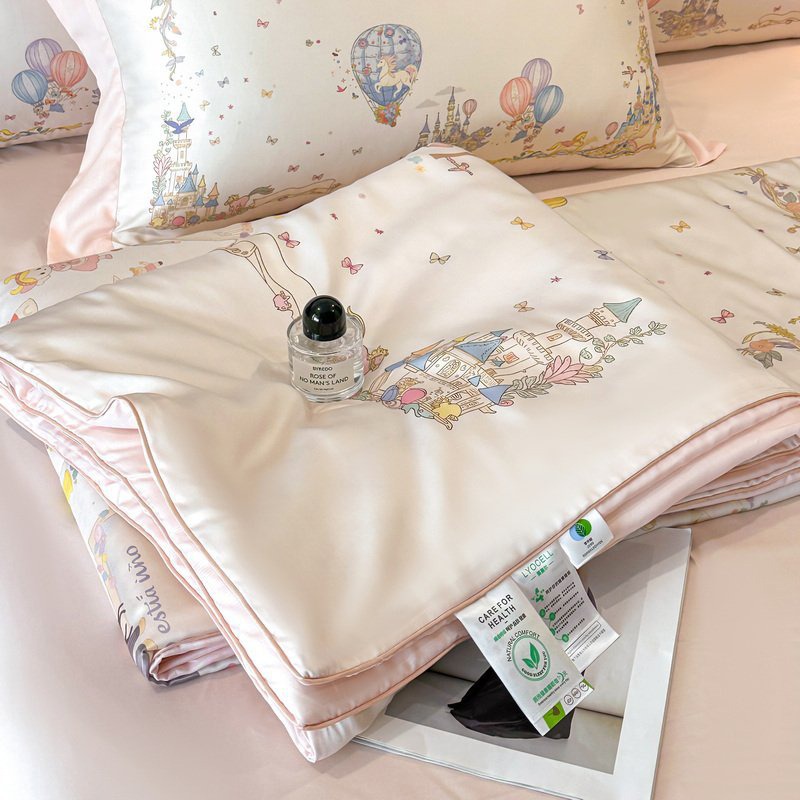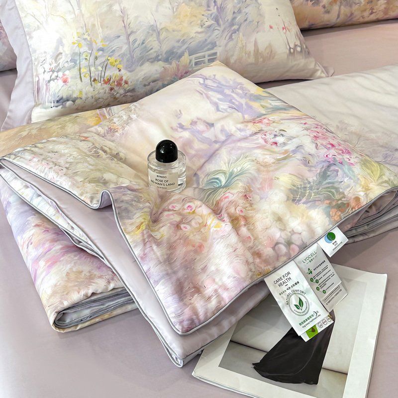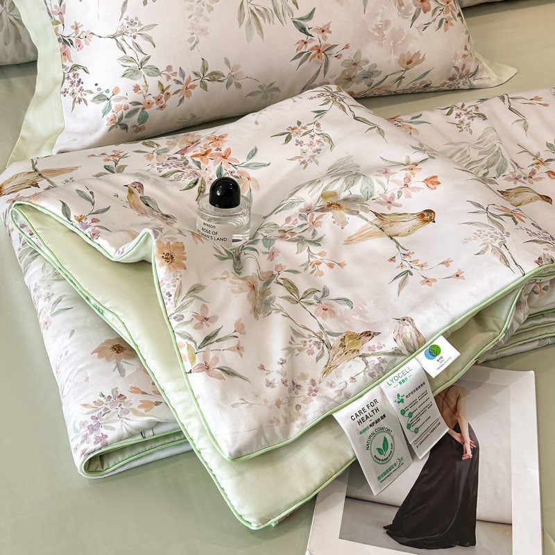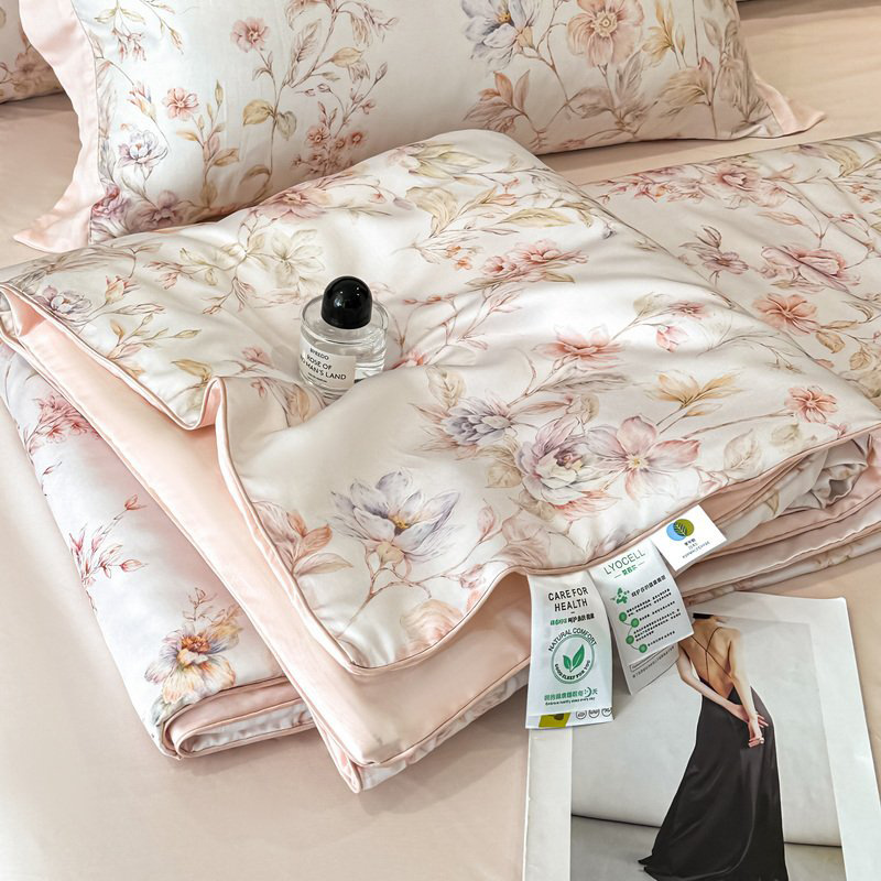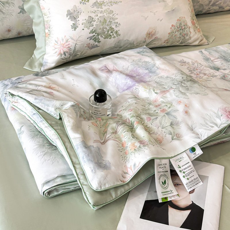 고급스러운 100% 라이오셀 텐셀 여름 이불, 시원한 아이스 실크 얇은 이불, 세탁기 사용 가능 에어컨 이불 4종 세트